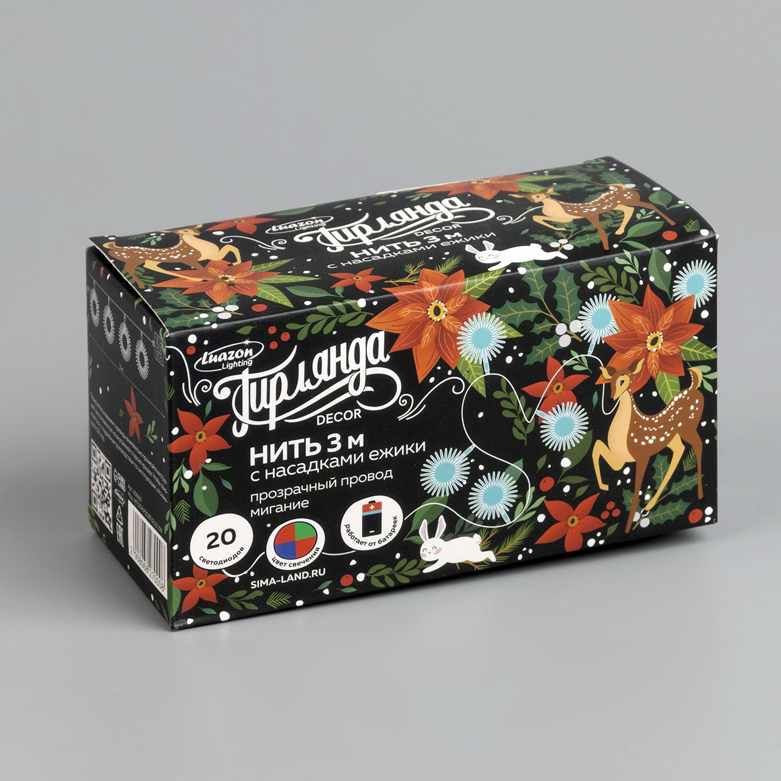 Гирлянда "Нить" 3 м с насадками "Ёжики", IP20, прозрачная нить, 20 LED, батарейки AAх3, Luazon Lighting, Китай