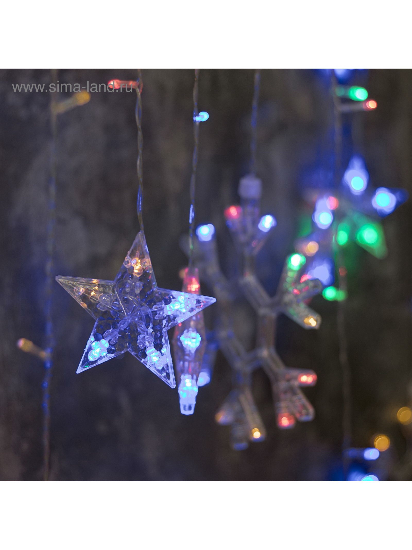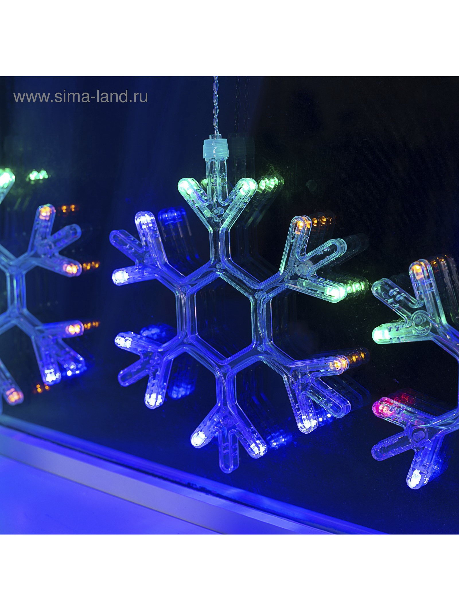 Гирлянда "Бахрома" 2.4 x 0.9 м с насадками "Снежинки", IP20, прозрачная нить, 150 LED, свечение мульти, 8 режимов, 220 В, 7x10x5 см., Luazon Lighting, Китай