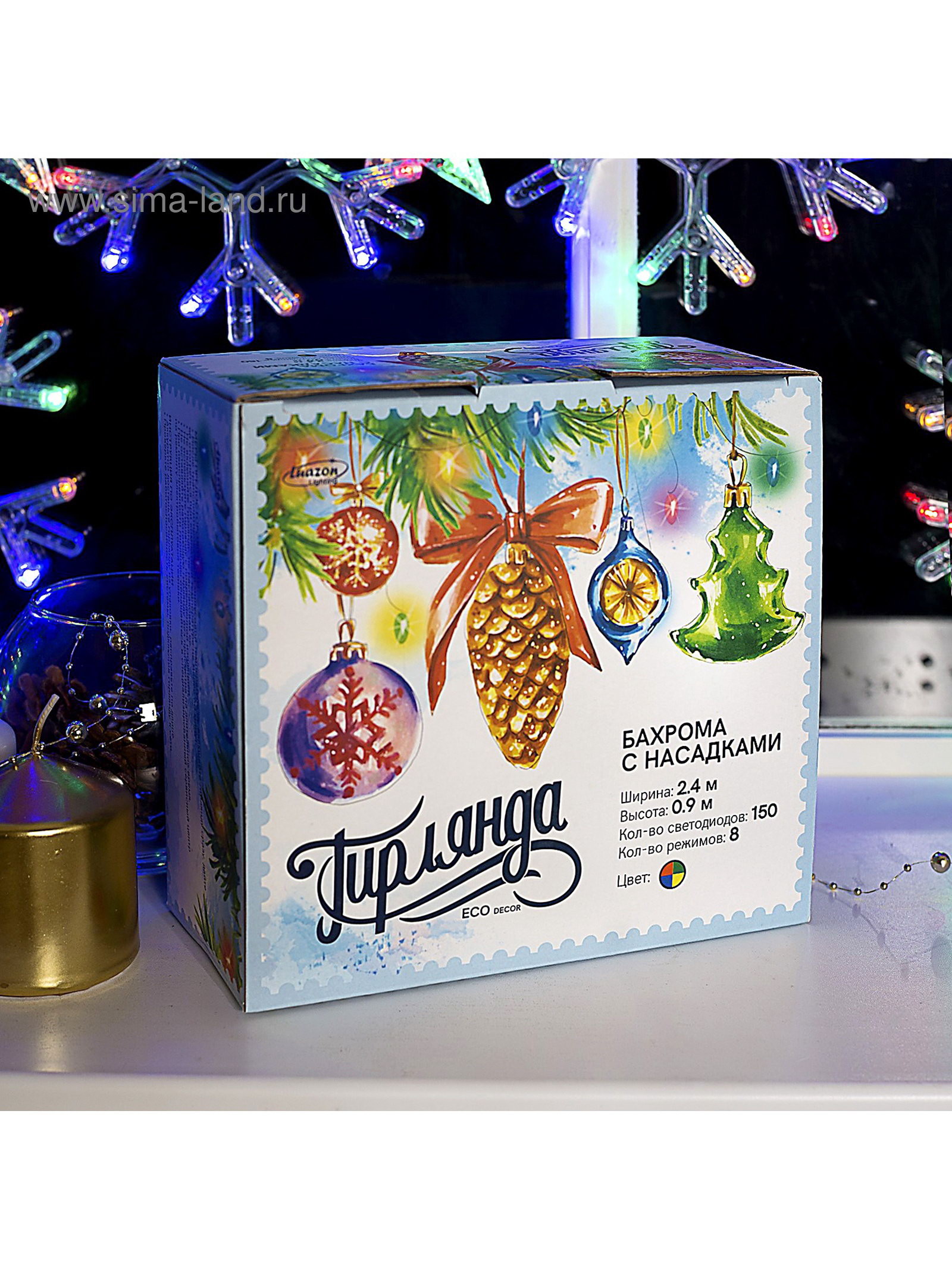 Размер упаковки: 10 x 20 x 21.5 см. Применение: Внутреннее Вид гирлянды: Бахрома Размер, м: 2.4 x 0.9 Вид лампы: Светодиодная Цвет свечения: Мульти Режим работы: Задаётся контроллером Цвет нити гирлянды: Прозрачный Количество режимов: 8 Насадки: Да Тип подключения: С контроллером Наличие блока питания: Нет Материал насадок: Пластик tnved: 9405310000 tnved: 9405310000 Гарантийный срок, мес.: 12 Количество ламп: 150 Материал нити: ПВХ Необходимая комплектация: Не нужна Вид насадки: Снежинки Высота, м: 0.9 Ширина, м: 2.4 Степень защиты: IP20 Тематика праздника: Новый год Температурный режим: От -10 до +35 ℃ Тип питания: От сети 220 В
