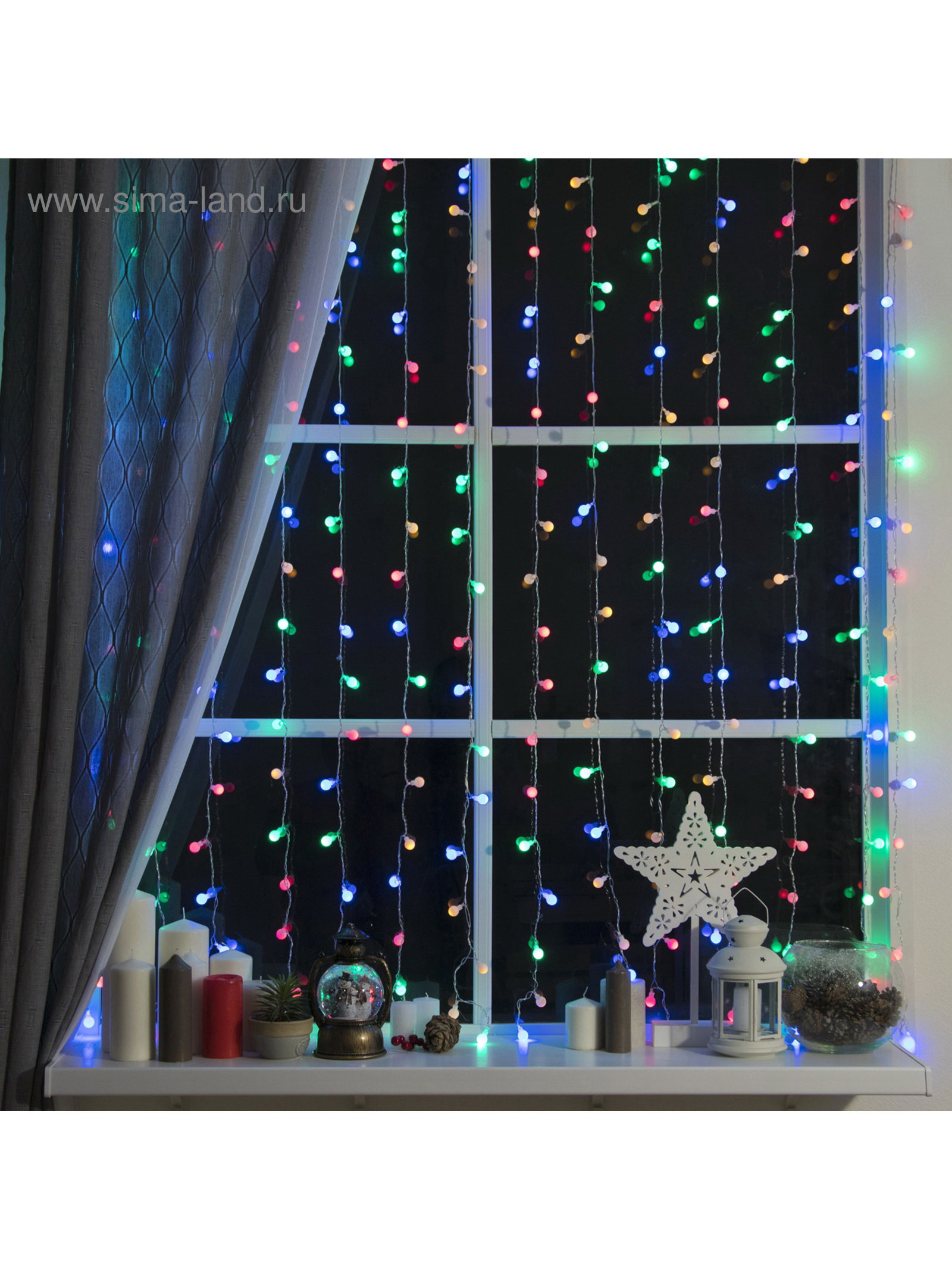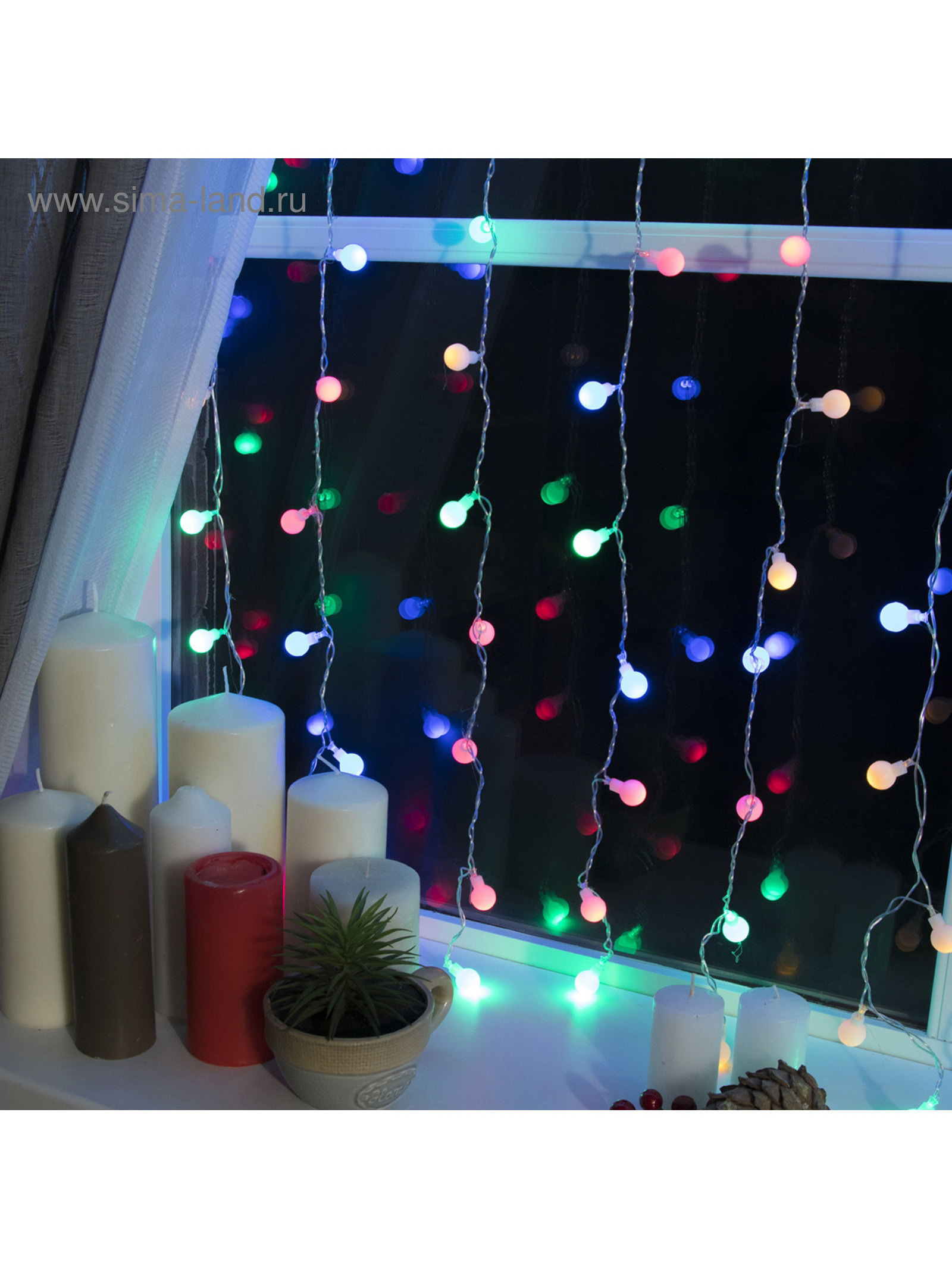 Гирлянда "Занавес" 2 x 1.5 м с насадками "Шарики", IP20, прозрачная нить, 360 LED, свечение мульти, 8 режимов, 220 В, Luazon Lighting, Китай