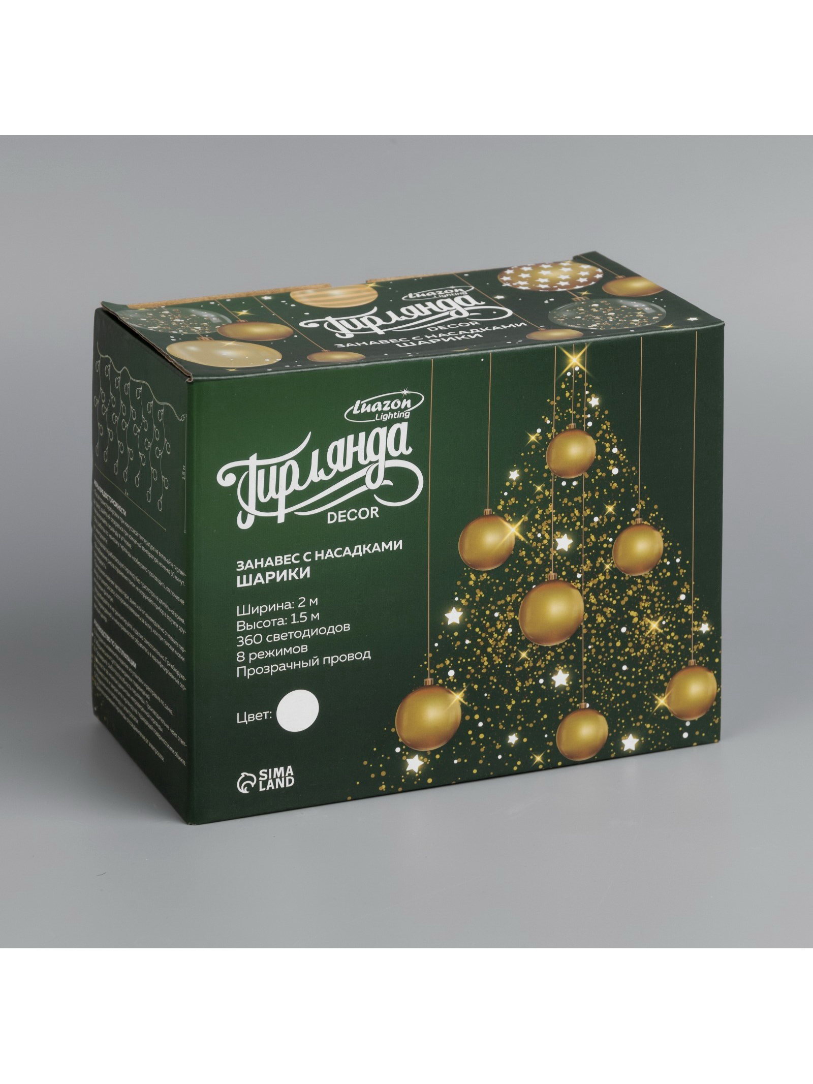 Размер упаковки: 20 x 16 x 11 см. Применение: Внутреннее Вид гирлянды: Занавес Цвет свечения: Белый Вид лампы: Светодиодная Размер, м: 2 x 1.5 Режим работы: Задаётся контроллером Тип подключения: УМС вилка Цвет нити гирлянды: Прозрачный Наличие блока питания: Нет Насадки: Да Количество режимов: 8 Материал насадок: Пластик tnved: 8539514000 Гарантийный срок, мес.: 12 Количество ламп: 360 Материал нити: ПВХ Необходимая комплектация: Не нужна Вид насадки: Шарики Высота, м: 1.5 Ширина, м: 2 Степень защиты: IP20 Тематика праздника: Новый год Температурный режим: От -10 до +35 ℃ Тип питания: От сети 220 В