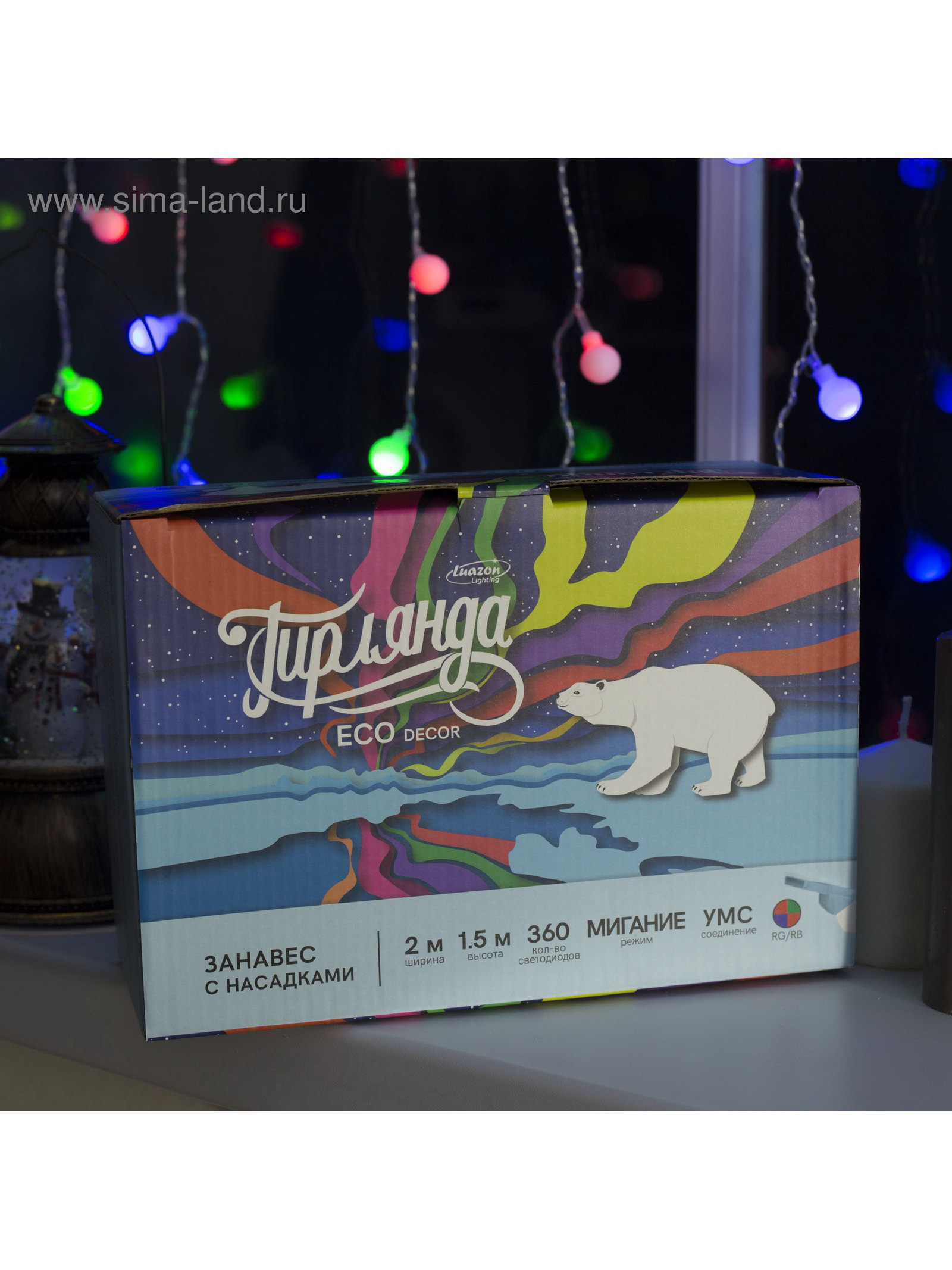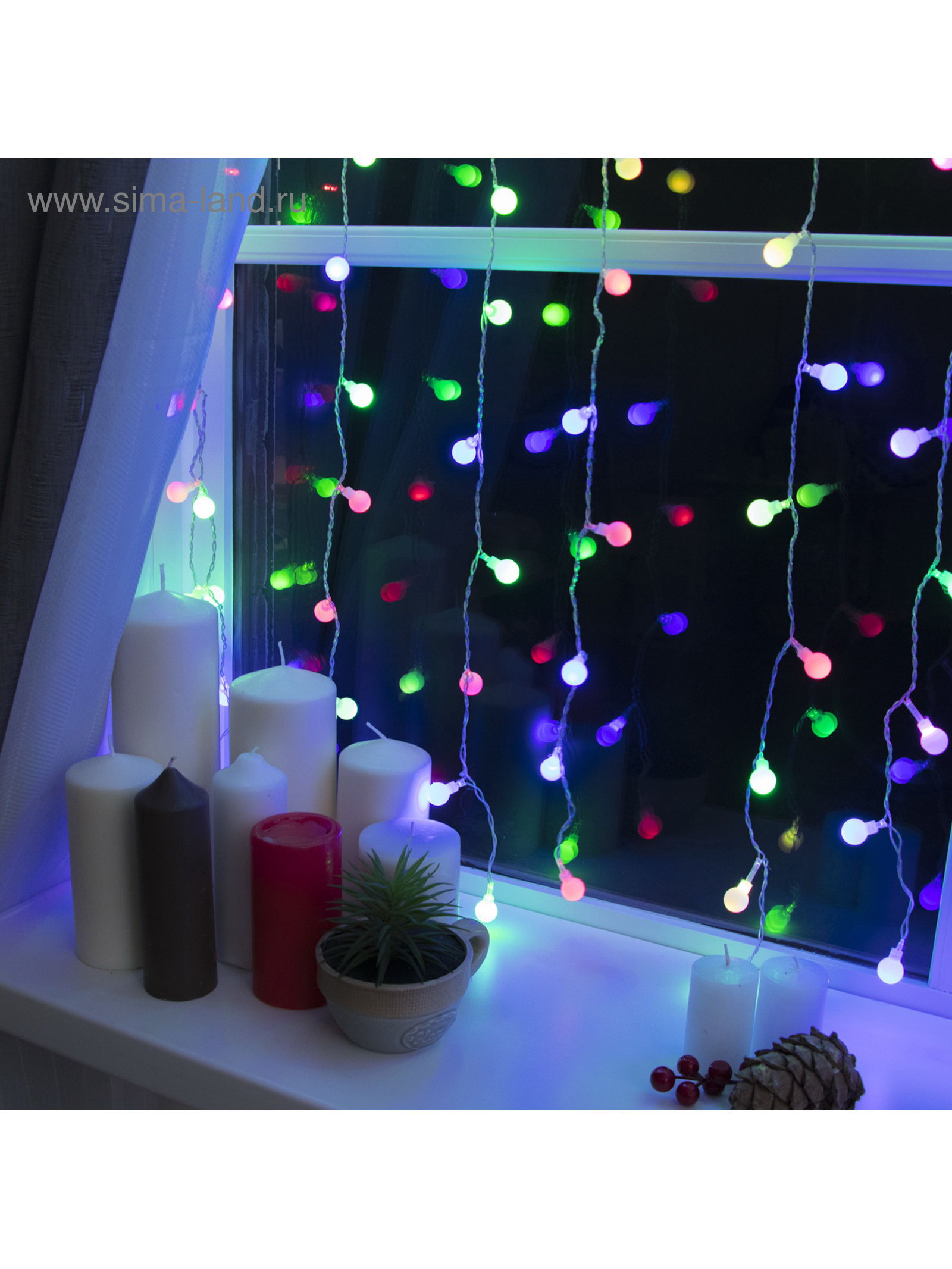 Гирлянда "Занавес" 2 x 1.5 м с насадками "Шарики", IP20, прозрачная нить, 360 LED, свечение мульти, Luazon Lighting, Китай