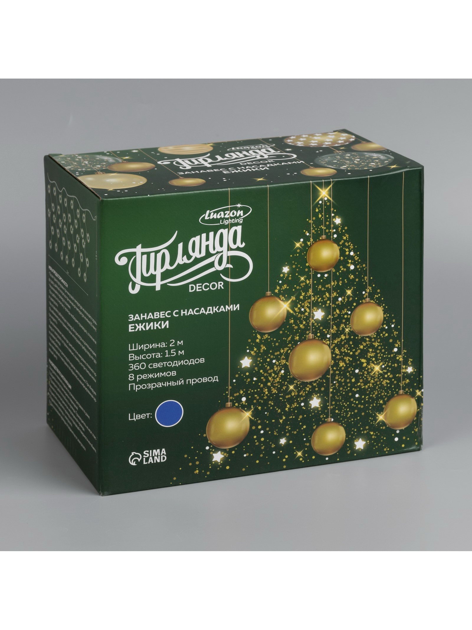 Размер упаковки: 22 x 16 x 24 см. Применение: Внутреннее Вид гирлянды: Занавес Вид лампы: Светодиодная Размер, м: 2 x 1.5 Цвет свечения: Синий Тип подключения: УМС вилка Режим работы: Задаётся контроллером Наличие блока питания: Нет Количество режимов: 8 Цвет нити гирлянды: Прозрачный Насадки: Да Материал насадок: Пластик tnved: 8539514000 Гарантийный срок, мес.: 12 Количество ламп: 360 Материал нити: ПВХ Необходимая комплектация: Не нужна Вид насадки: Ёжики Высота, м: 1.5 Ширина, м: 2 Степень защиты: IP20 Тематика праздника: Новый год Температурный режим: От -10 до +35 ℃ Тип питания: От сети 220 В