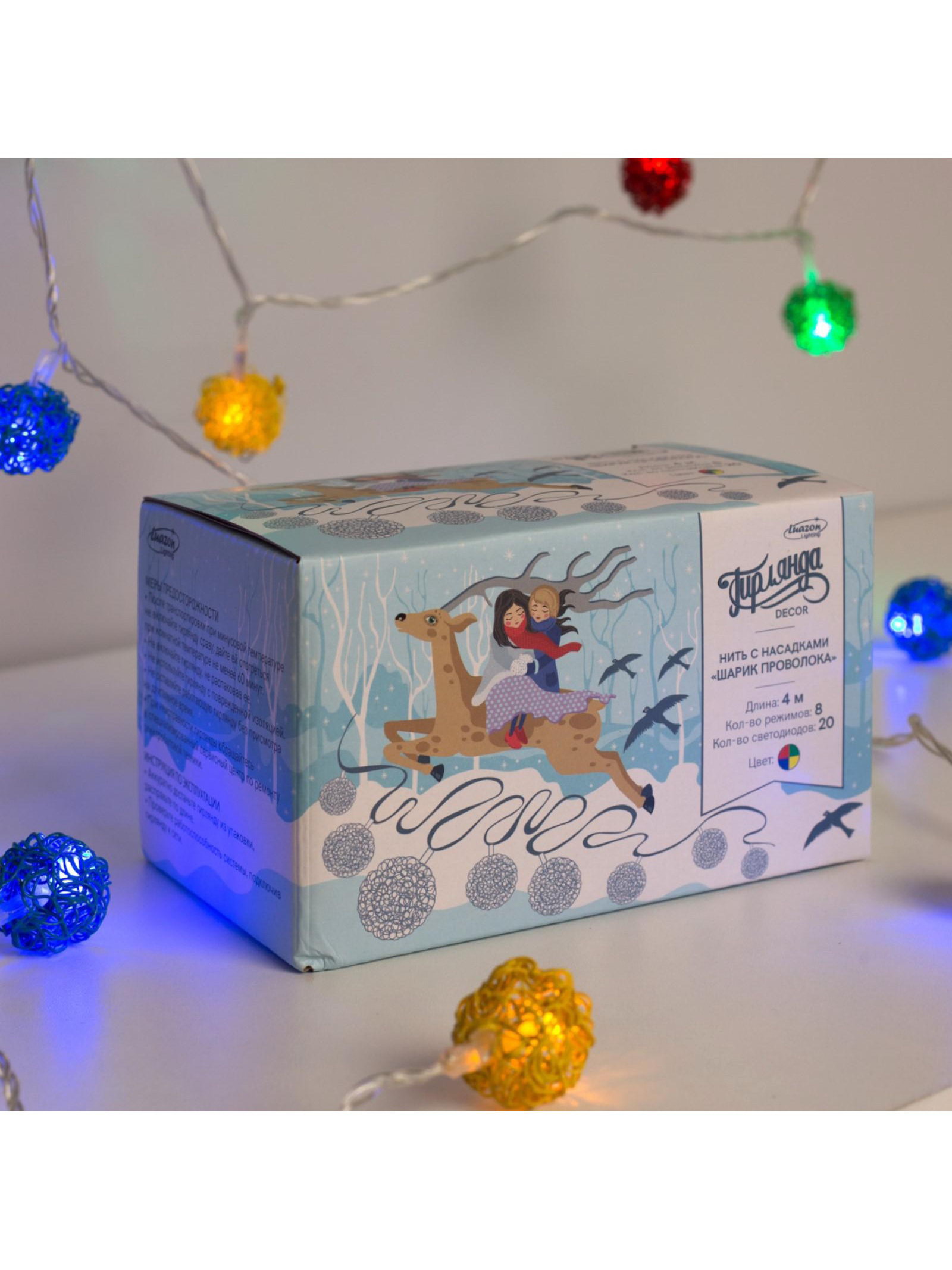 Гирлянда "Нить" 4 м с насадками "Шарик проволока", IP20, прозрачная нить, 20 LED, свечение мульти, 8 режимов, 220 В, Luazon Lighting, Китай