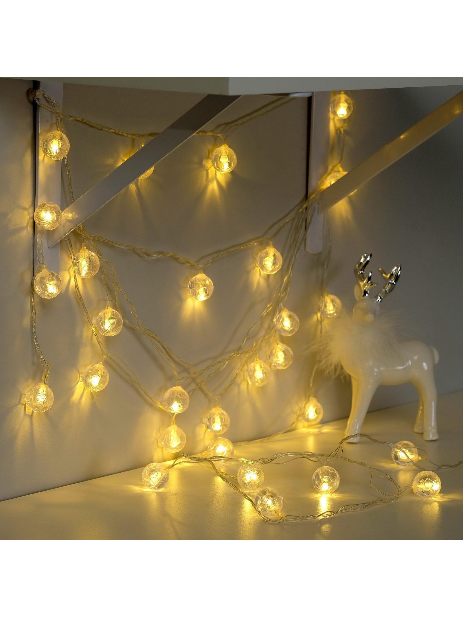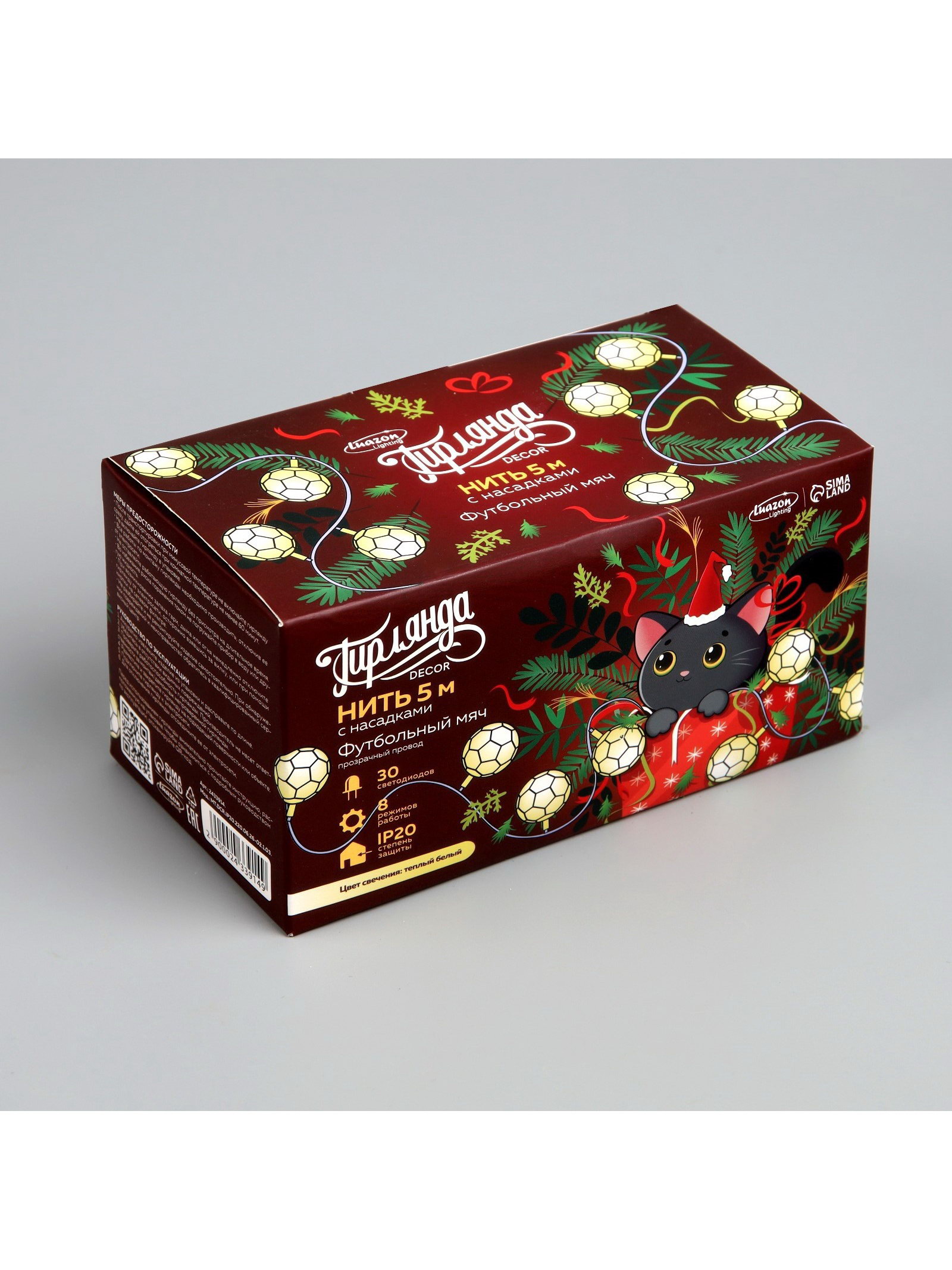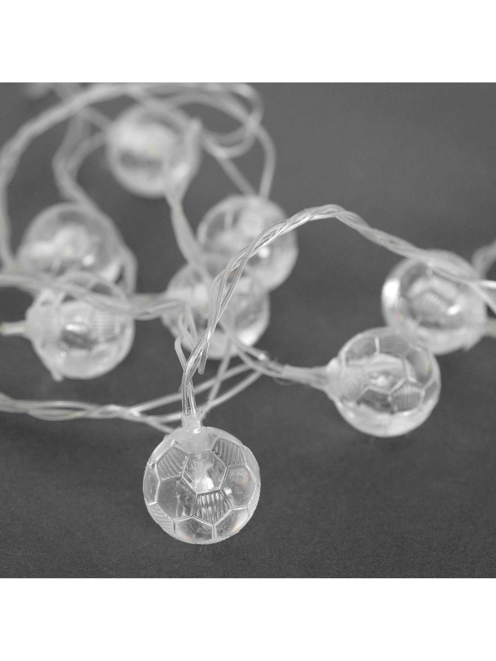 Гирлянда "Нить" 5 м с насадками "Футбольный мяч", IP20, прозрачная нить, 30 LED, свечение тёплое белое, 8 режимов, 220 В, Luazon Lighting, Китай