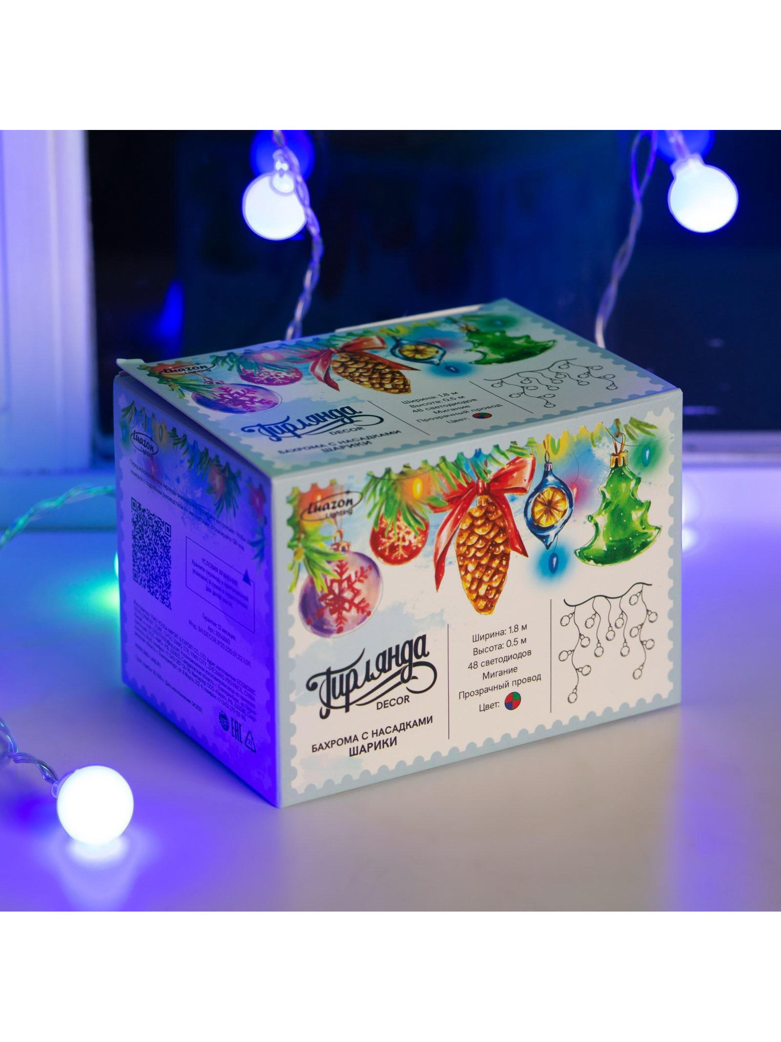 Гирлянда "Бахрома" 1.8 x 0.5 м с насадками "Шарики", IP20, прозрачная нить, 48 LED, свечение мульти, Luazon Lighting, Китай
