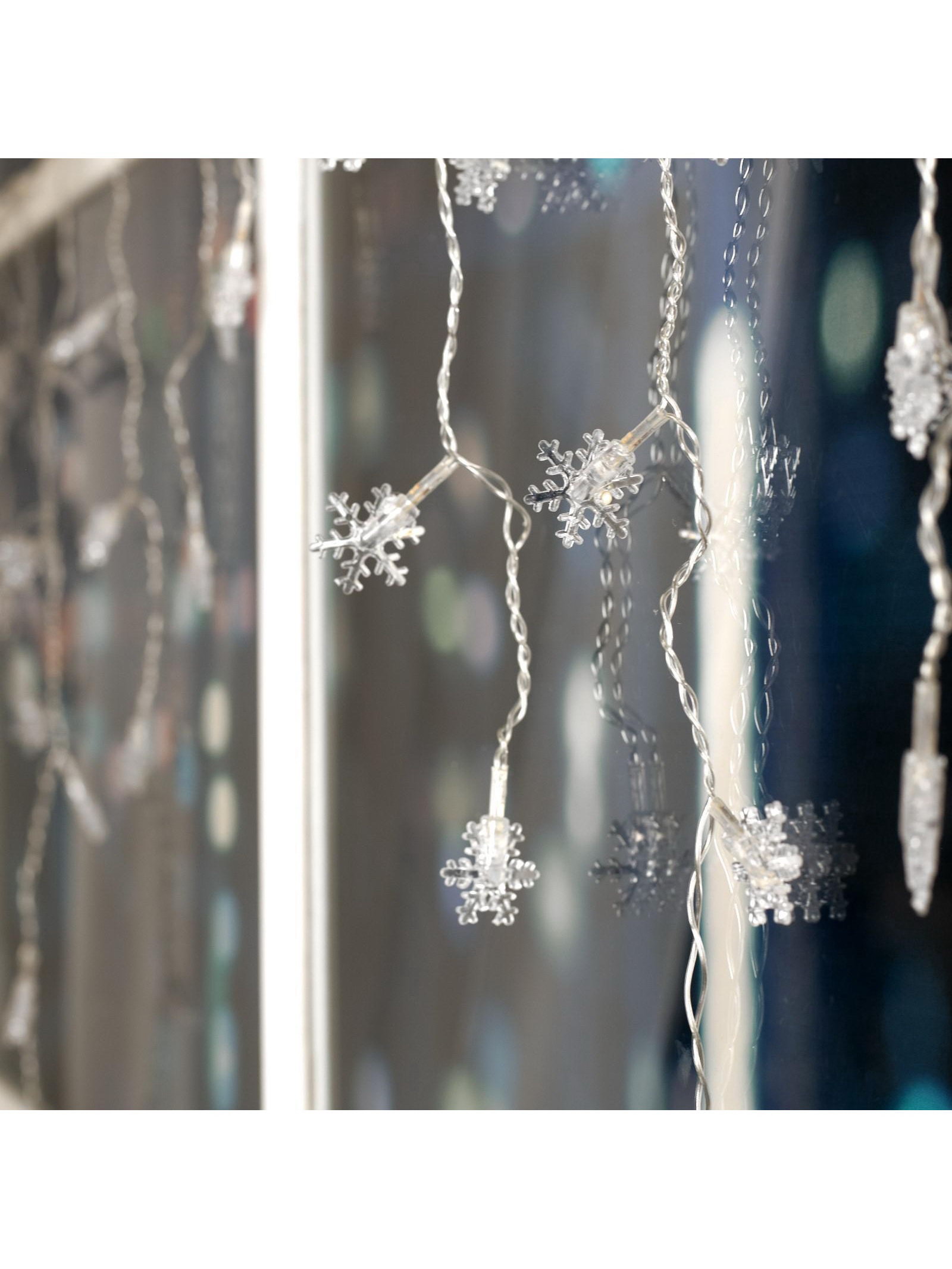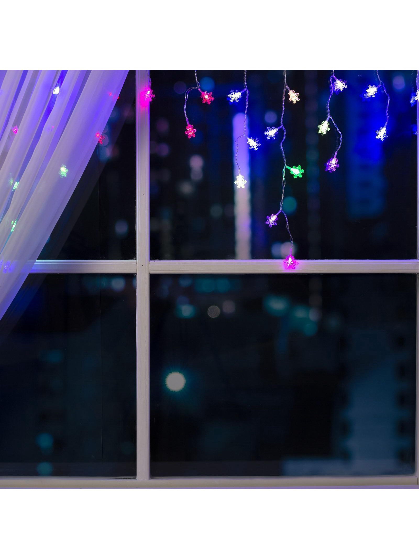Гирлянда "Бахрома" 1.8 x 0.5 м с насадками "Снежинки", IP20, прозрачная нить, 48 LED, свечение мульти, Luazon Lighting, Китай