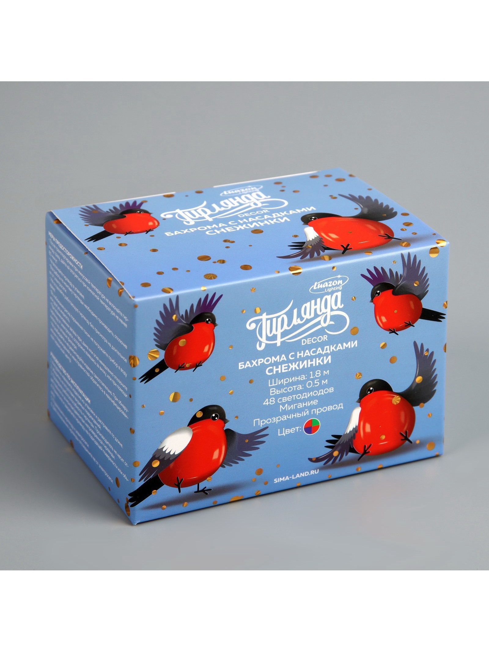 Размер упаковки: 8 x 8 x 11 см. Материал насадок: Пластик tnved: 8539514000 tnved: 8539514000 Гарантийный срок, мес.: 12 Тип подключения: Шнур питания Размер, м: 1.8 x 0.5 Насадки: Да Режим работы: Мигание Применение: Внутреннее Вид гирлянды: Бахрома Вид лампы: Светодиодная Цвет нити гирлянды: Прозрачный Количество режимов: 1 Количество ламп: 48 Материал нити: ПВХ Наличие блока питания: Нет Цвет свечения: RG/RB Необходимая комплектация: Не нужна Вид насадки: Снежинки Ширина, м: 1.8 Высота, м: 0.5 Степень защиты: IP20 Тематика праздника: Новый год Температурный режим: От -10 до +35 ℃ Тип питания: От сети 220 В
