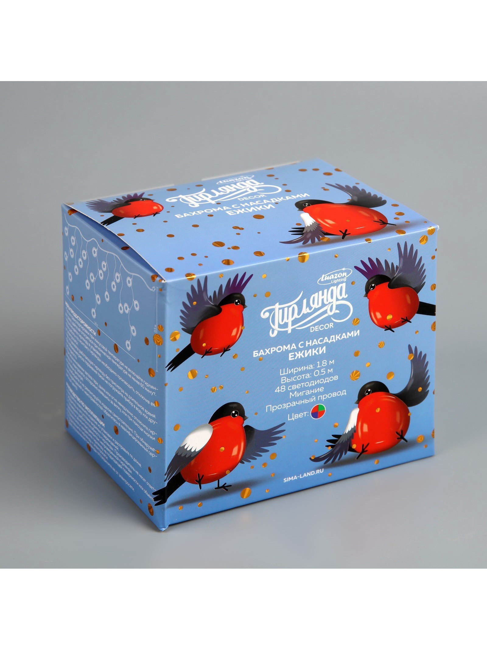 Гирлянда "Бахрома" 1.8 x 0.5 м с насадками "Ёжики", IP20, прозрачная нить, 48 LED, свечение мульти, Luazon Lighting, Китай