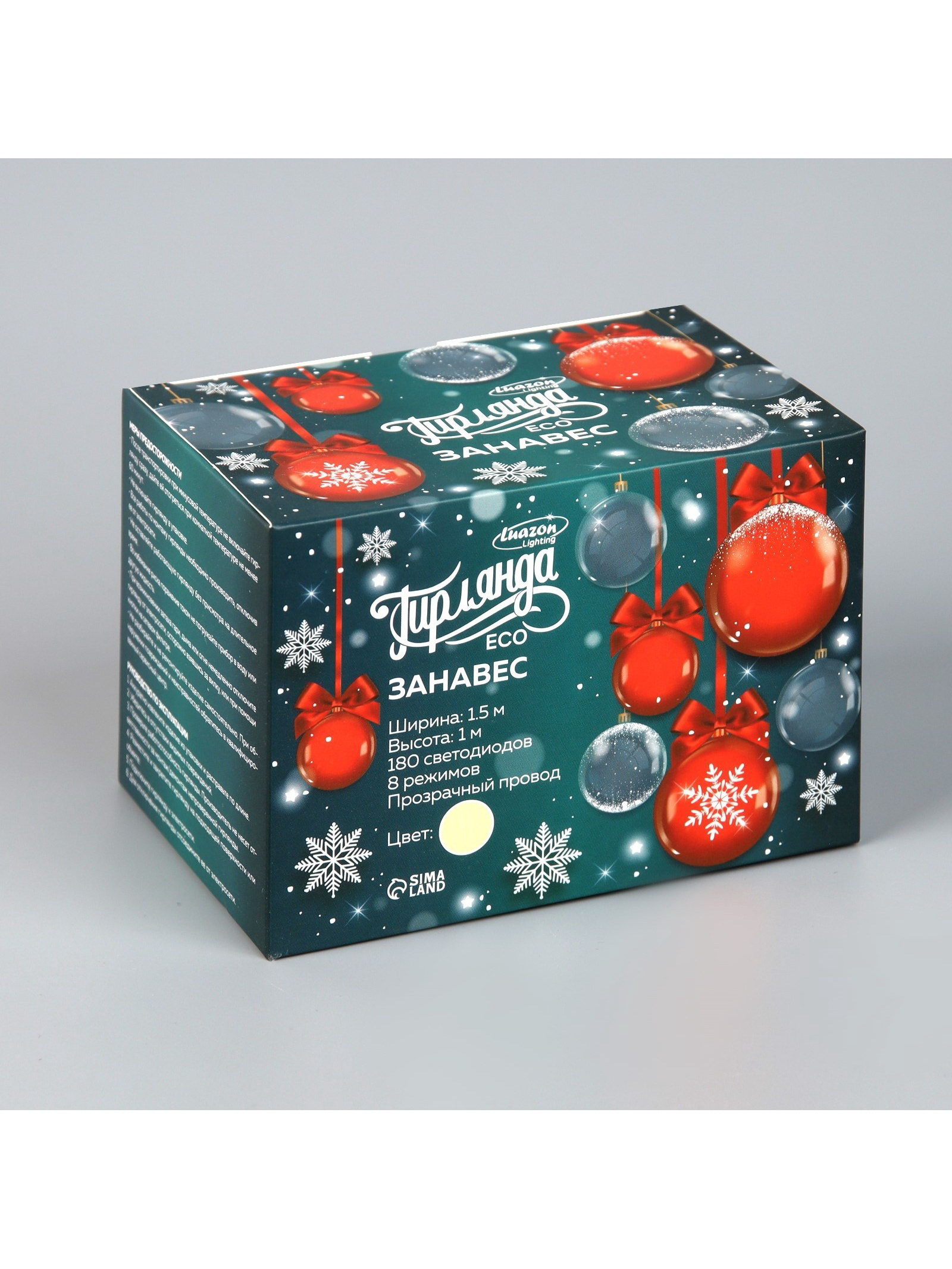 Гирлянда "Занавес" 1.5x1 м, IP20, прозрачная нить, 180 LED, свечение тёплое белое, 8 режимов, 220 В, Luazon Lighting, Китай