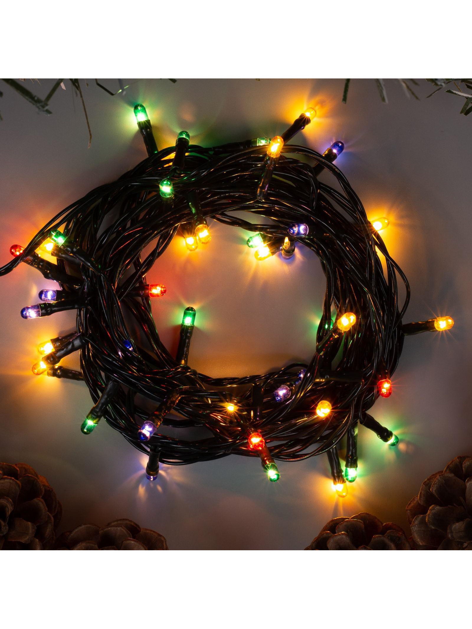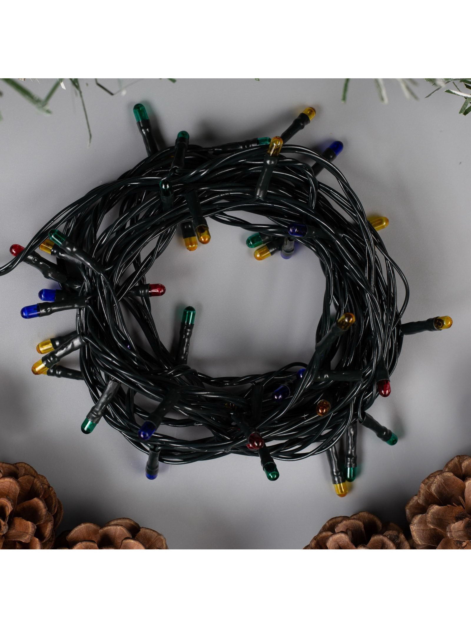 Размер упаковки: 5 x 6.5 x 8 см. Применение: Внутреннее Материал нити: ПВХ Вид лампы: Накаливания Длина, м: 5 Цвет нити гирлянды: Тёмный Насадки: Нет Вид гирлянды: Гирлянда-нить Количество режимов: 8 Цвет свечения: Мульти Тип подключения: С контроллером Наличие блока питания: Нет Режим работы: Задаётся контроллером tnved: 9405310000 Количество ламп: 50 Необходимая комплектация: Не нужна Вид насадки: Без насадок Степень защиты: IP20 Тематика праздника: Новый год Температурный режим: От -10 до +35 ℃ Тип питания: От сети 220 В