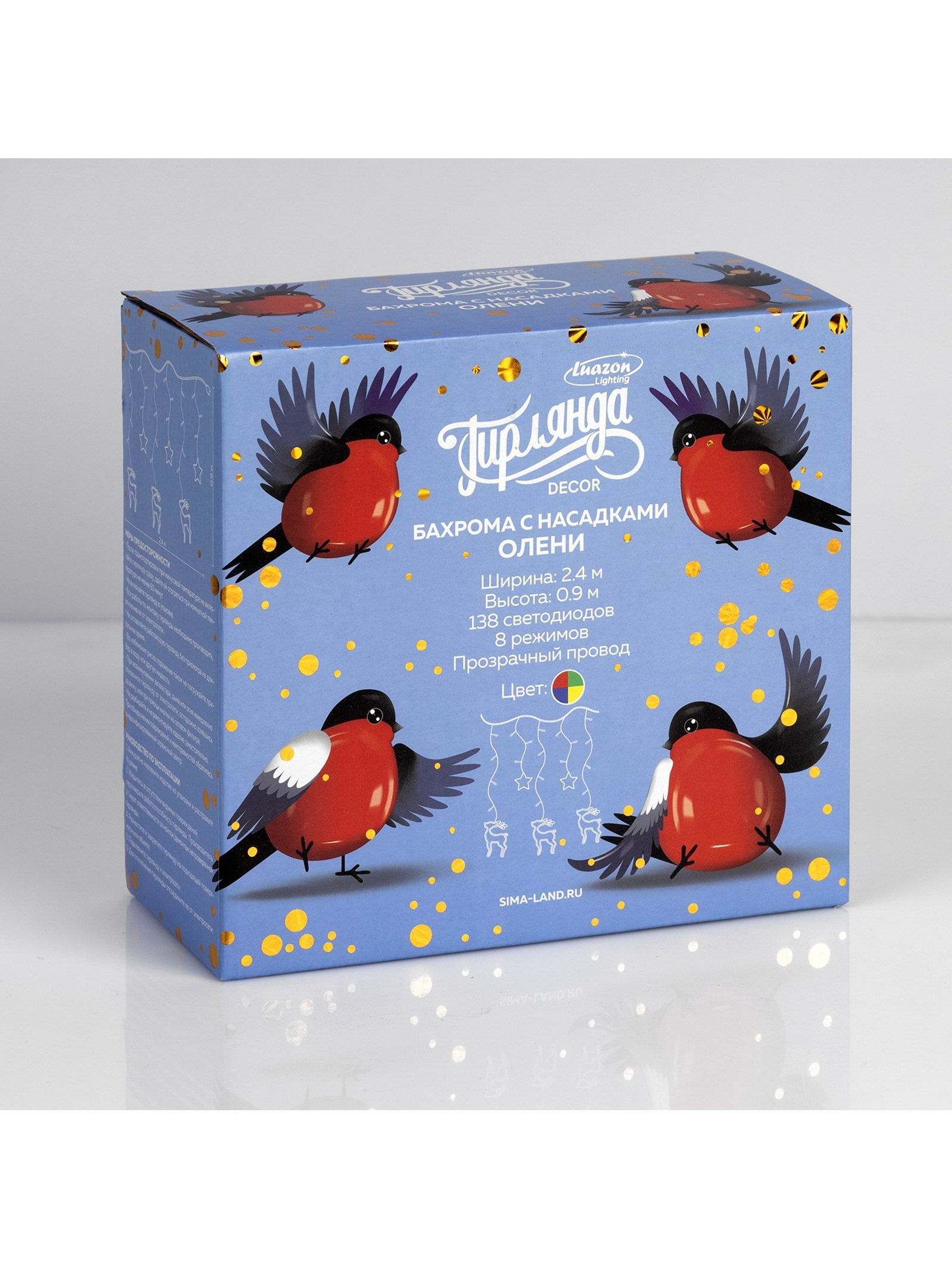 Гирлянда "Бахрома" 2.4 x 0.9 м с насадками "Олень", IP20, прозрачная нить, 138 LED, свечение мульти, 8 режимов, 220 В, Luazon Lighting, Китай