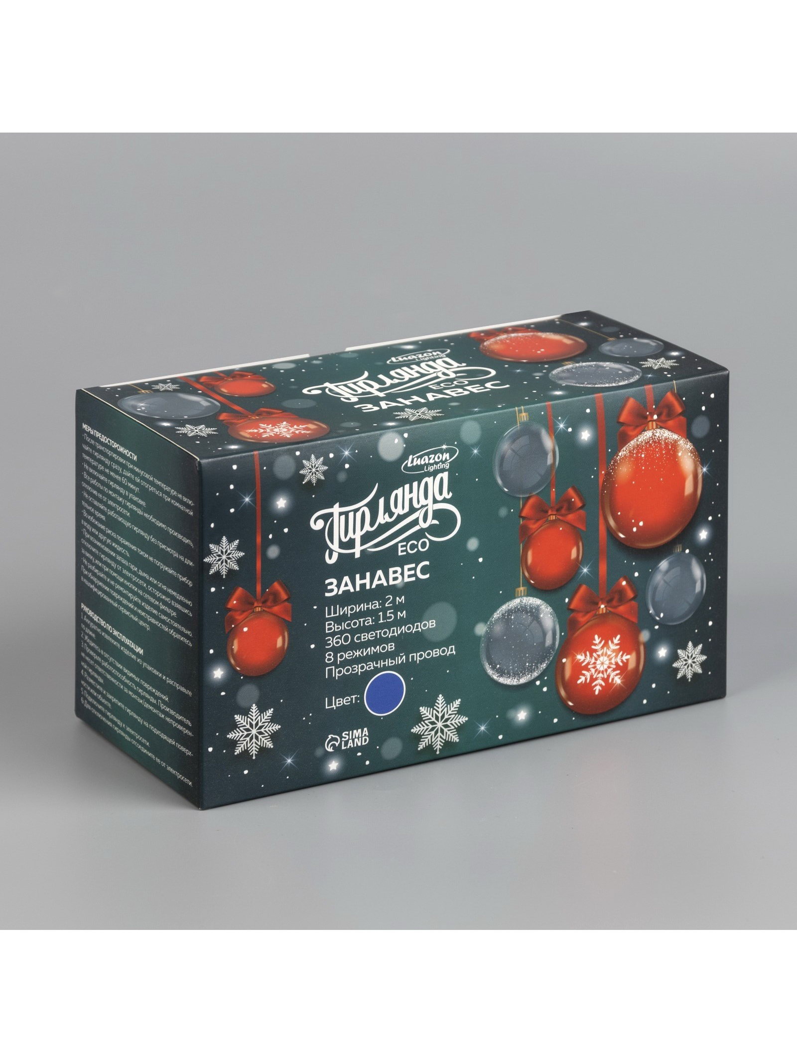 Тип подключения: С контроллером, УМС вилка Размер упаковки: 8.5 x 10.5 x 18 см. Цвет нити гирлянды: Прозрачный Применение: Внутреннее Вид лампы: Светодиодная Насадки: Нет Размер, м: 2 x 1.5 Вид гирлянды: Занавес Цвет свечения: Синий Наличие блока питания: Нет Количество режимов: 8 Режим работы: Задаётся контроллером Гарантийный срок, мес.: 12 tnved: 9405310000 Количество ламп: 360 Материал нити: ПВХ Необходимая комплектация: Не нужна Вид насадки: Без насадок Высота, м: 1.5 Ширина, м: 2 Степень защиты: IP20 Тематика праздника: Новый год Температурный режим: От -10 до +35 ℃ Тип питания: От сети 220 В