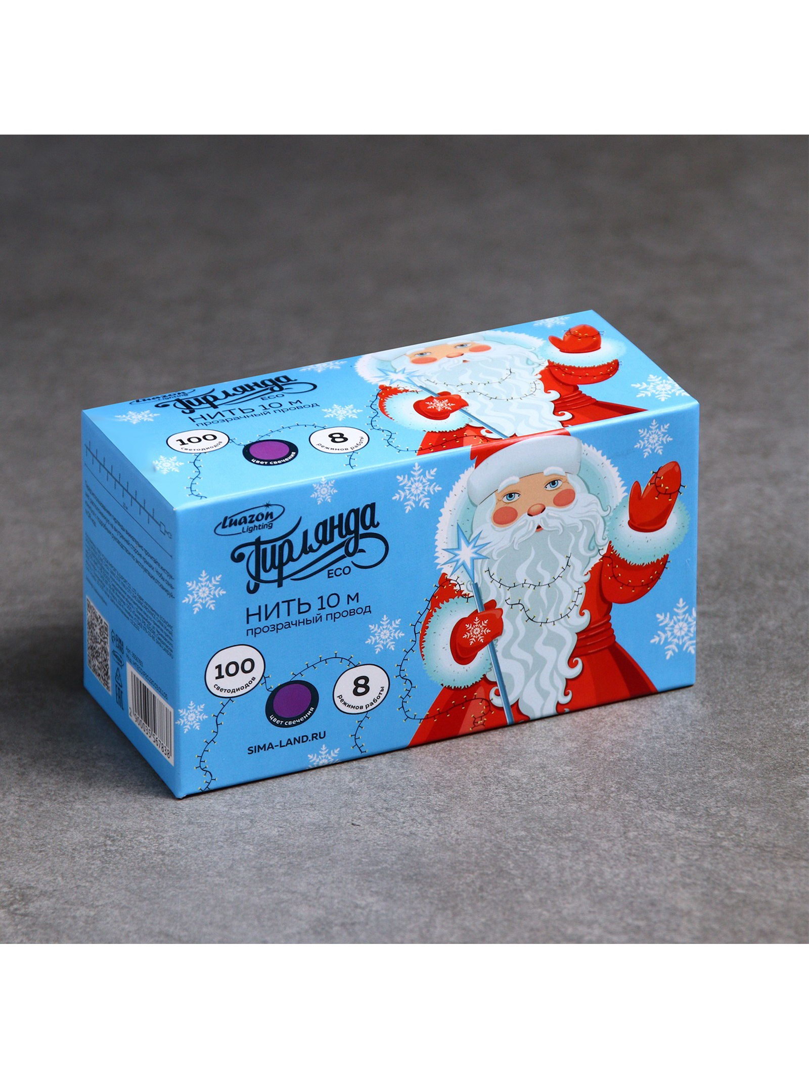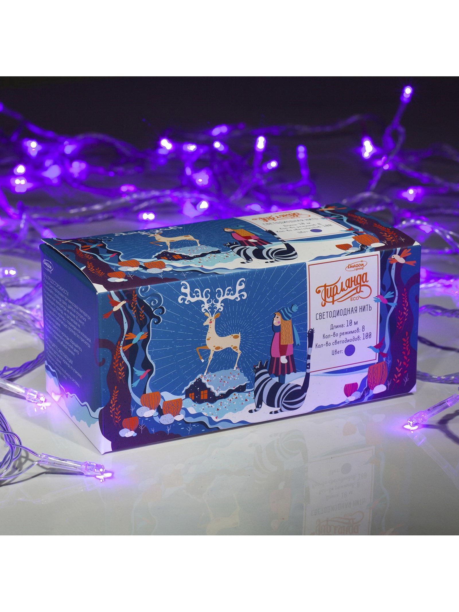 Гирлянда "Нить" 10 м, IP20, прозрачная нить, 100 LED, 8 режимов, 220 В, свечение фиолетовое, 7x15x6.5 см., Luazon Lighting, Китай