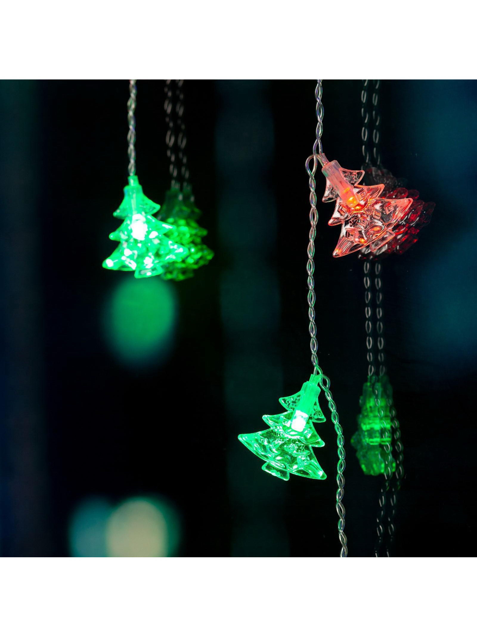Гирлянда "Бахрома" 1.8 x 0.5 м с насадками "Ёлки", IP20, прозрачная нить, 48 LED, свечение мульти, Luazon Lighting, Китай
