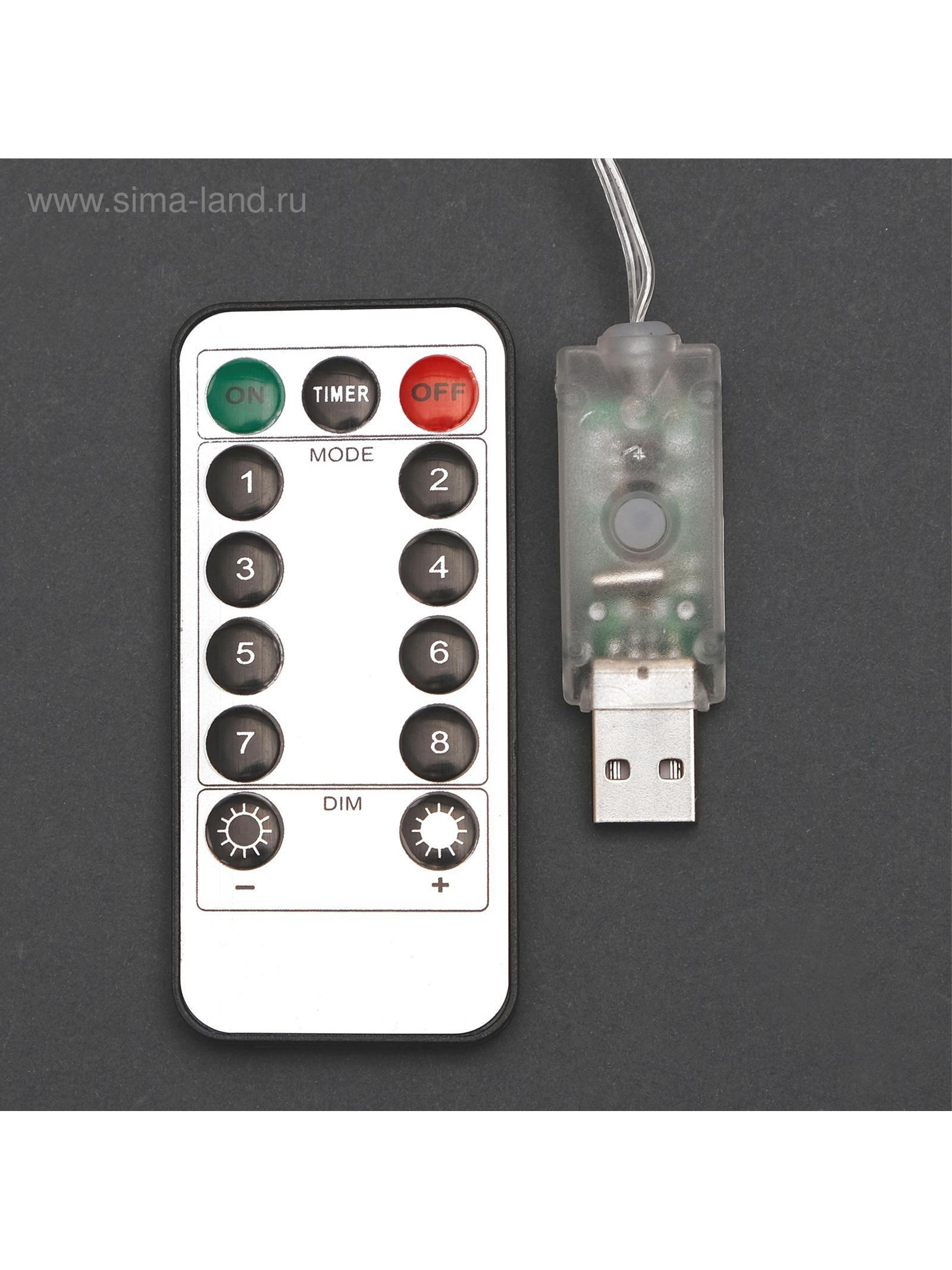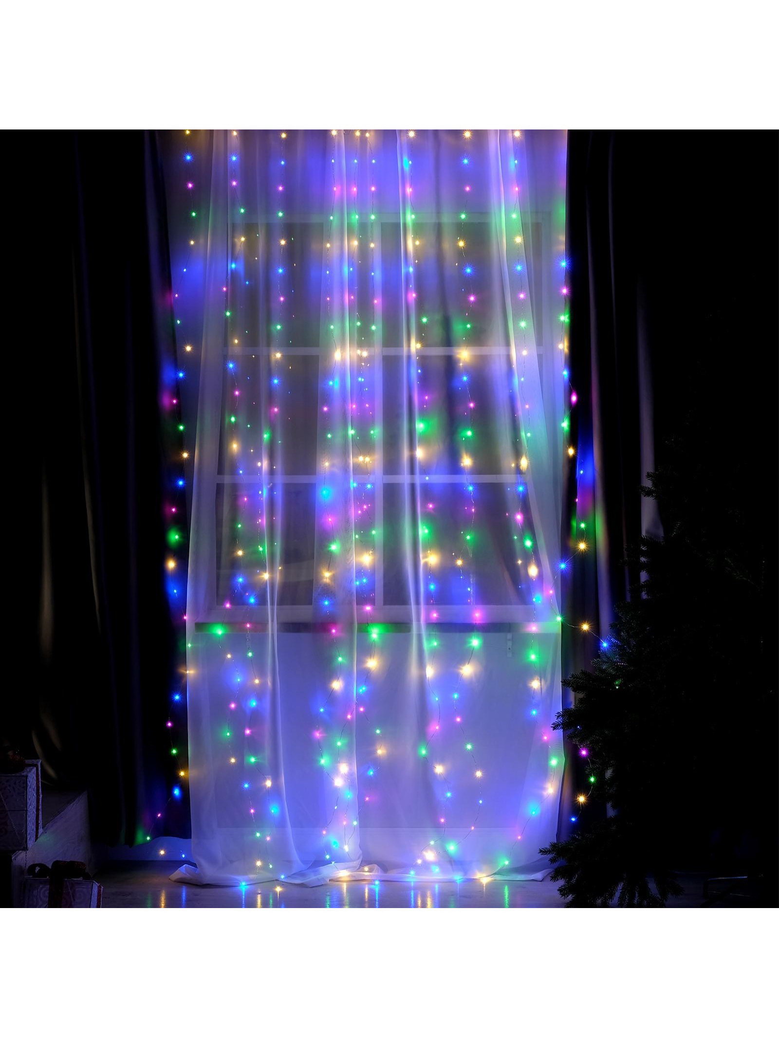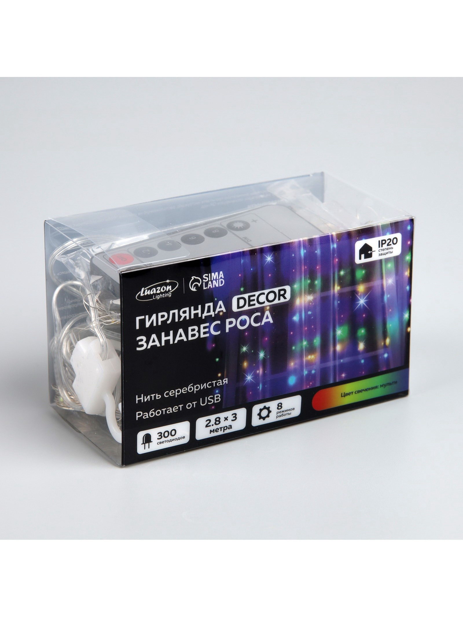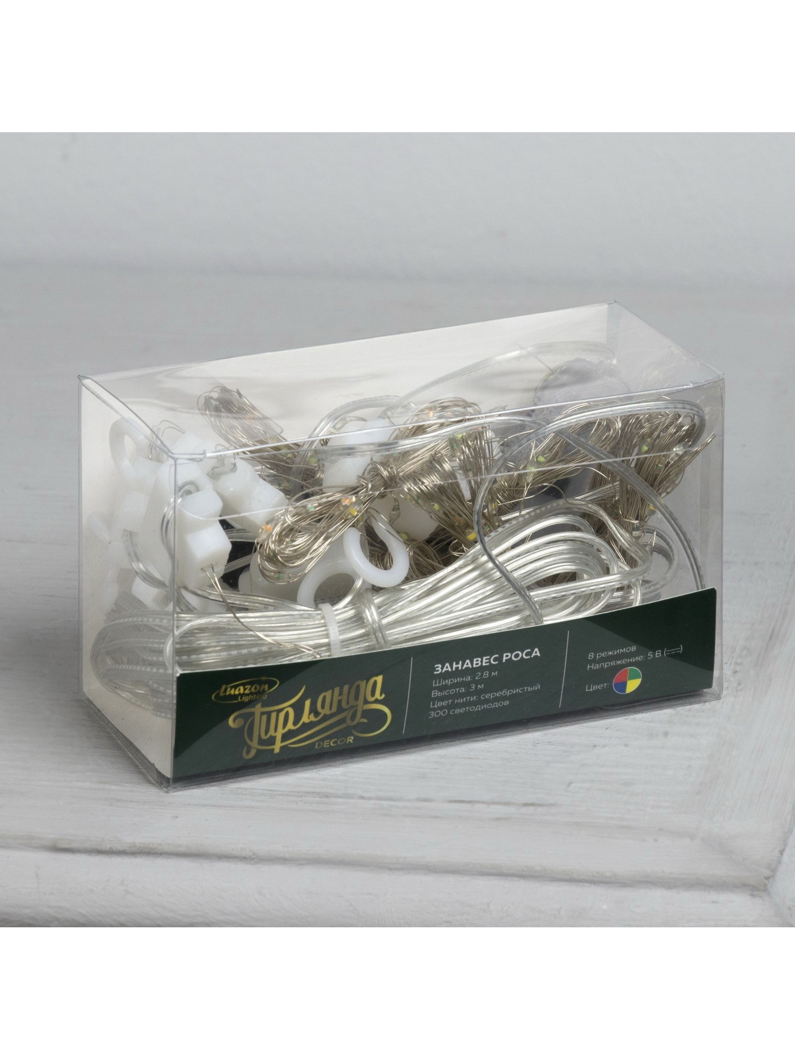 Гирлянда "Занавес" 2.8 x 3 м роса на крючках, с пультом, IP20, серебристая нить, 300 LED, свечение мульти, 8 режимов, USB, Luazon Lighting, Китай