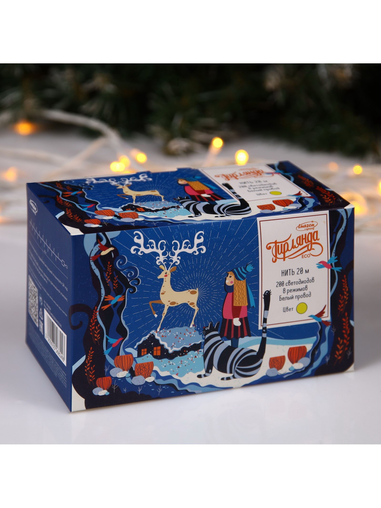 Гирлянда "Нить" 20 м, IP20, белая нить, 200 LED, свечение жёлтое, 8 режимов, 220 В, Luazon Lighting, Китай