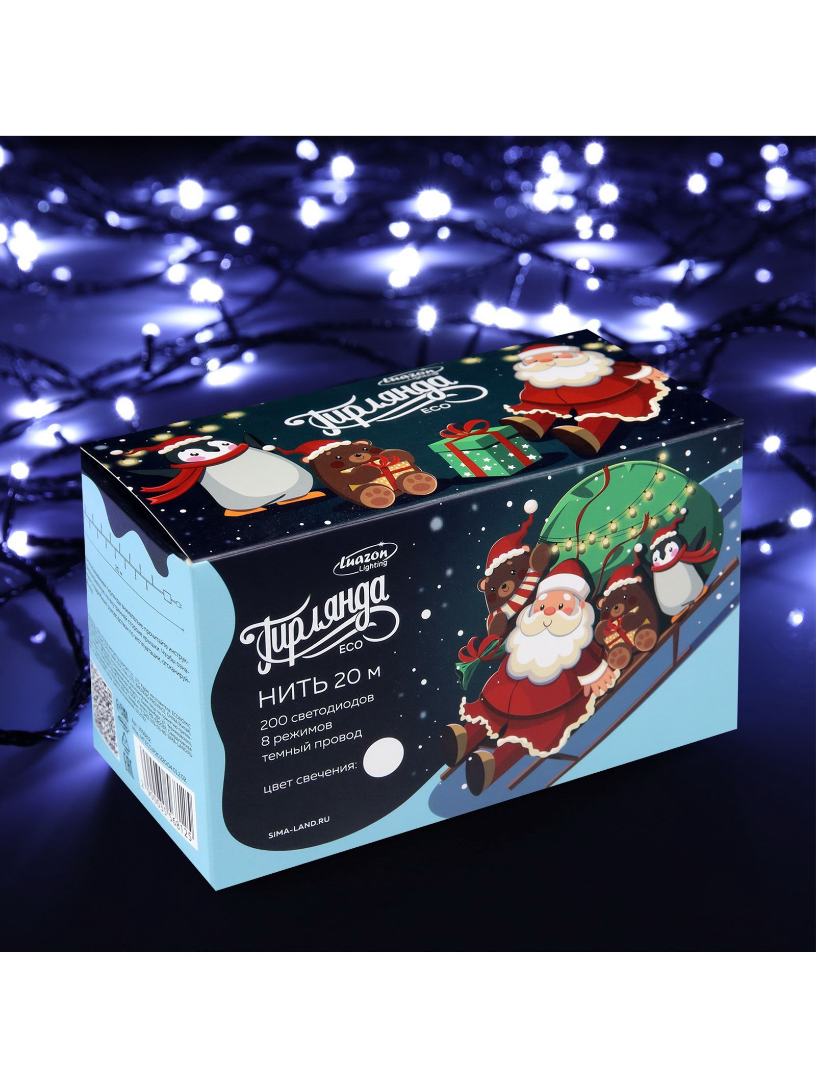 Размер упаковки: 8 x 9 x 15 см. Применение: Внутреннее Вид гирлянды: Гирлянда-нить Режим работы: Задаётся контроллером Количество режимов: 8 Длина, м: 20 Наличие блока питания: Нет Насадки: Нет Вид лампы: Светодиодная Цвет нити гирлянды: Тёмный Тип подключения: С контроллером Материал нити: ПВХ Цвет свечения: Белый tnved: 9405310000 Гарантийный срок, мес.: 12 Количество ламп: 200 Необходимая комплектация: Не нужна Вид насадки: Без насадок Степень защиты: IP20 Тематика праздника: Новый год Температурный режим: От -10 до +35 ℃ Тип питания: От сети 220 В