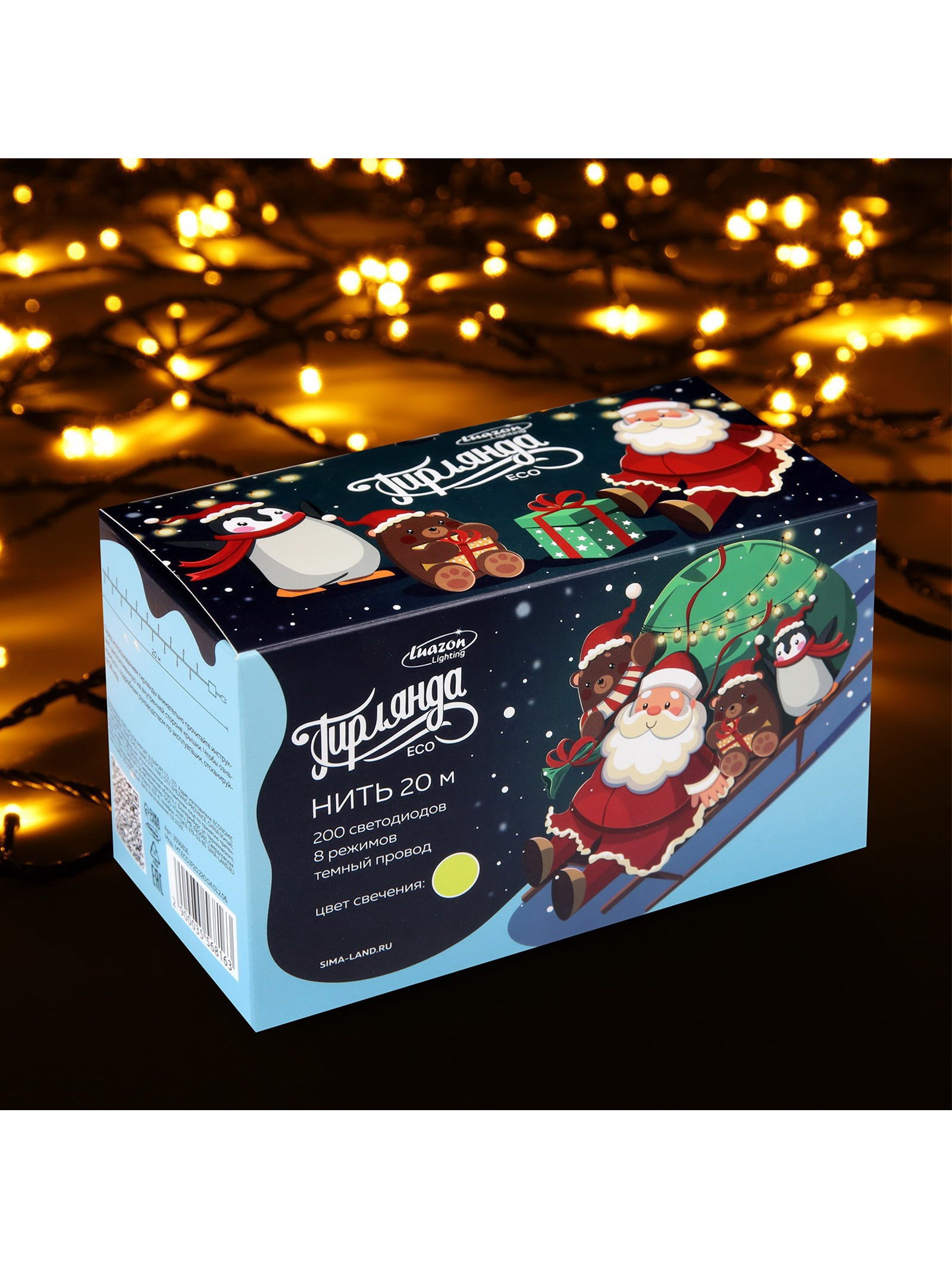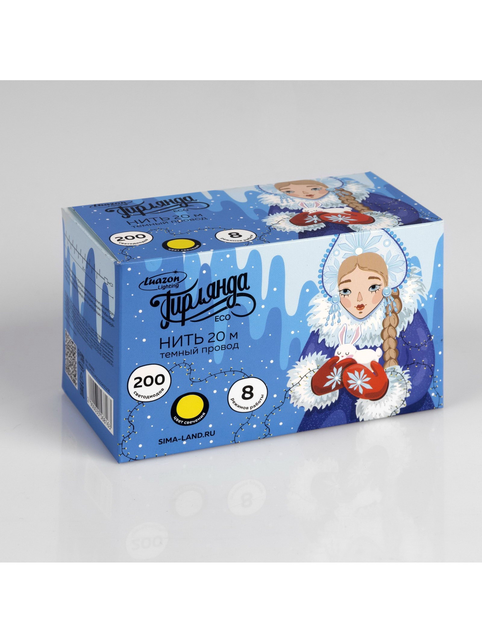 Гирлянда "Нить" 20 м, IP20, тёмная нить, 200 LED, свечение жёлтое, 8 режимов, 220 В, Luazon Lighting, Китай