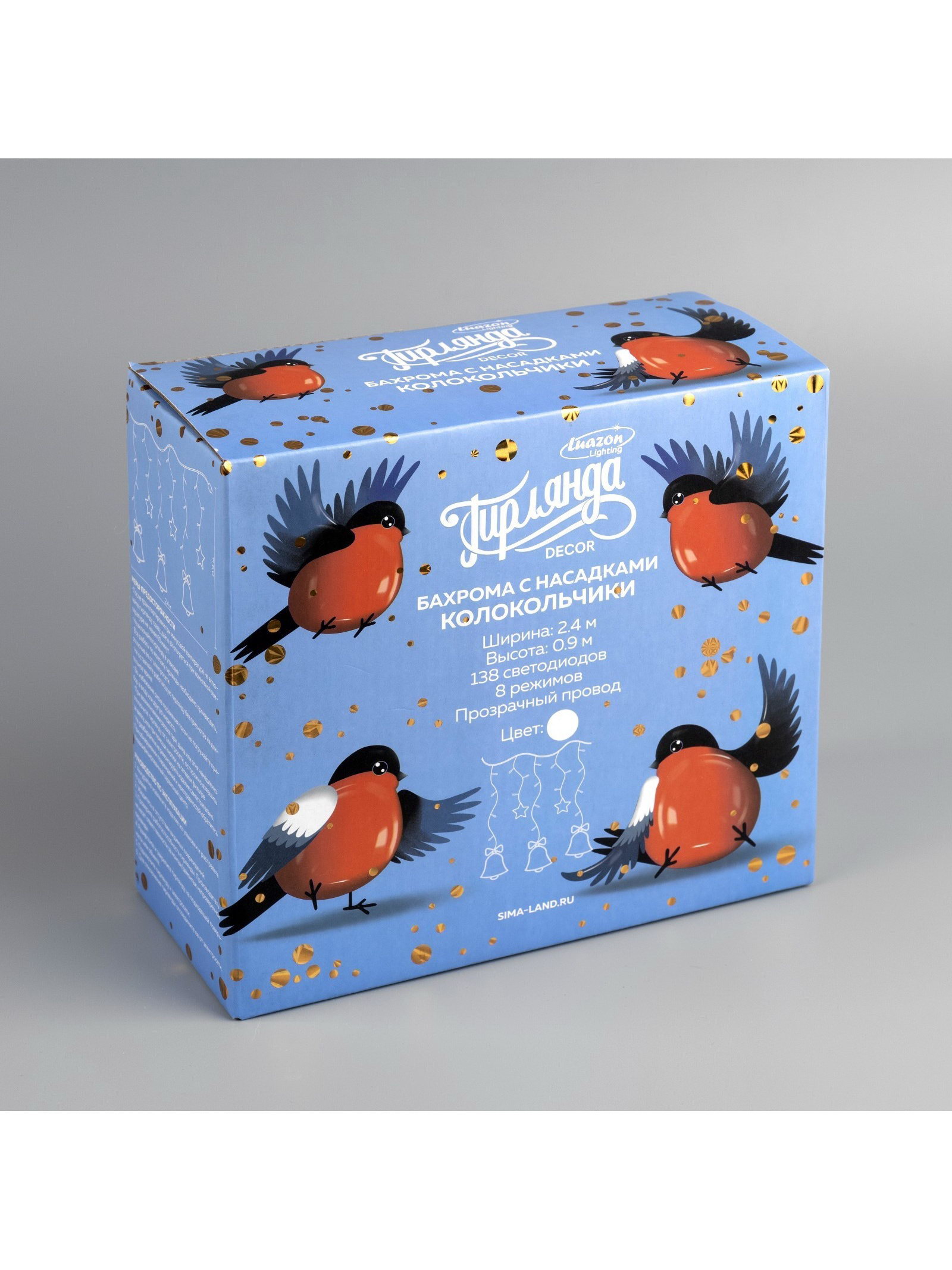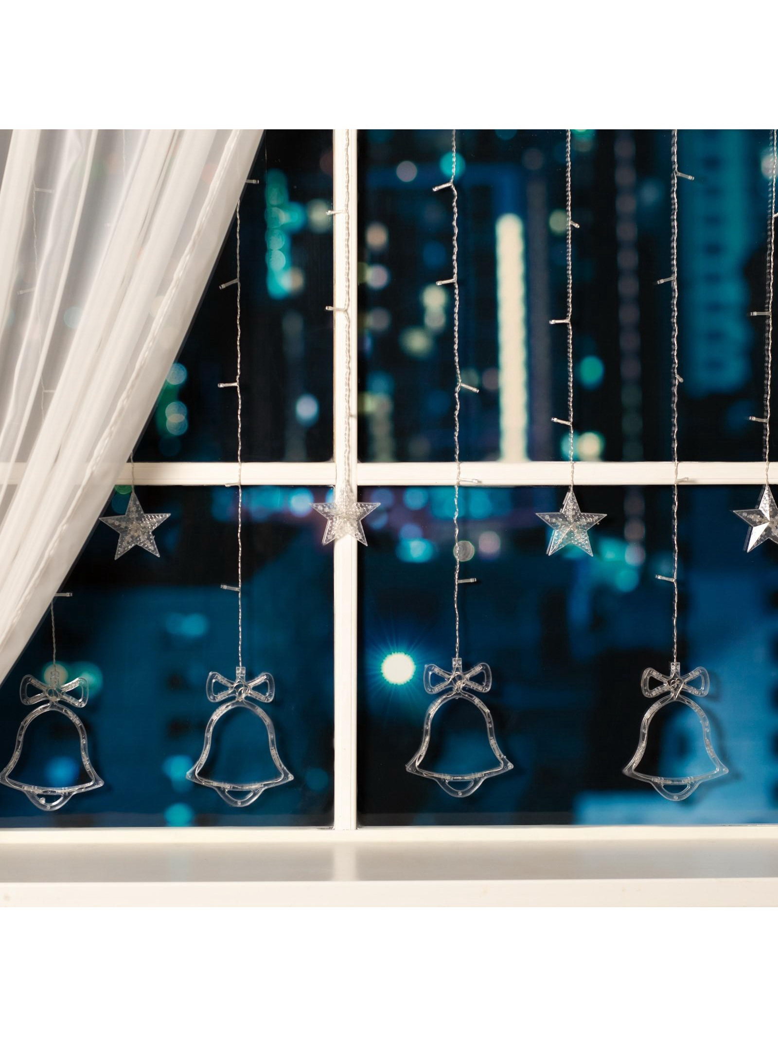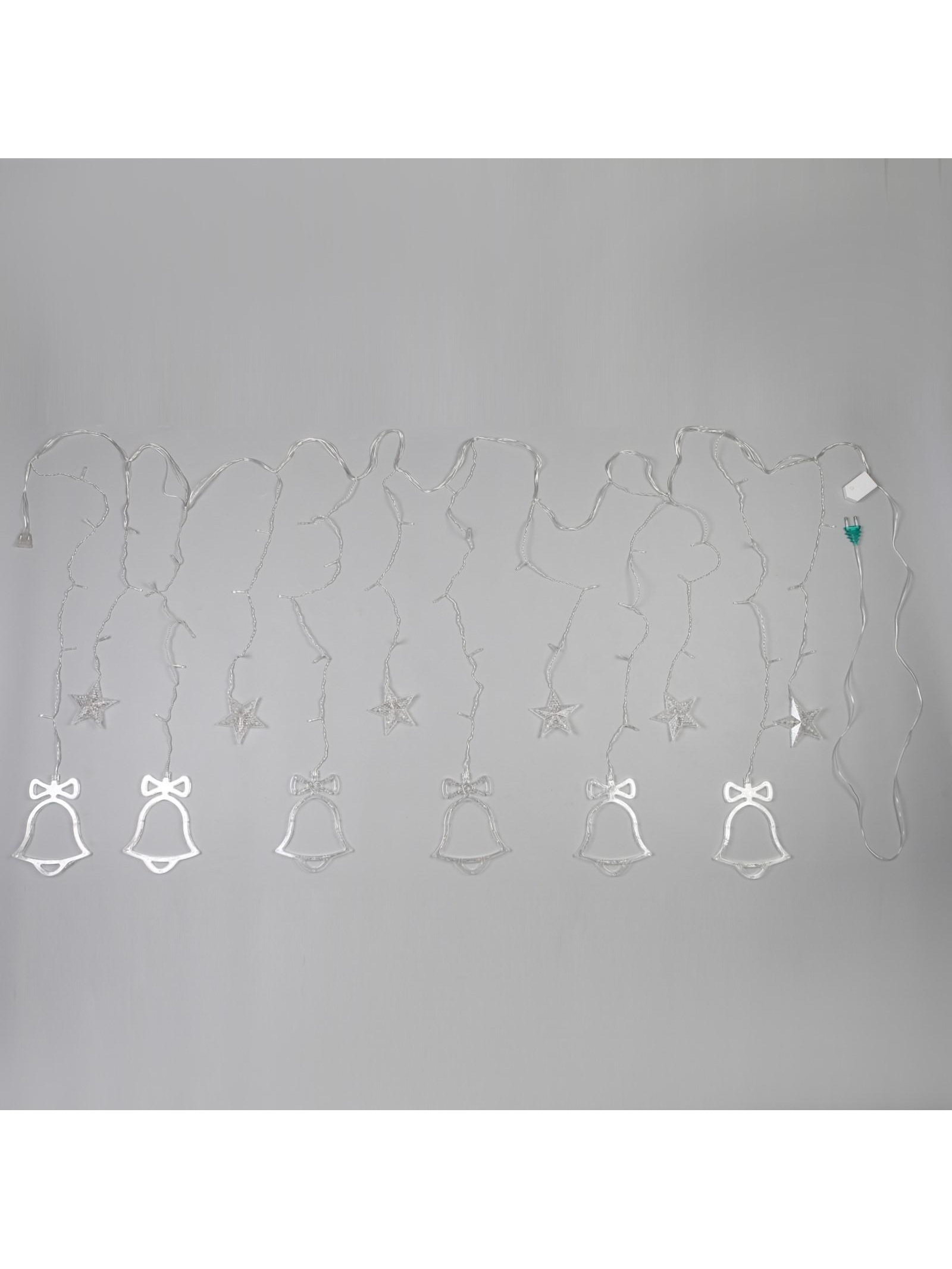 Гирлянда "Бахрома" 2.4 x 0.9 м с насадками "Колокольчики", IP20, прозрачная нить, 138 LED, свечение белое, 8 режимов, 220 В, Luazon Lighting, Китай