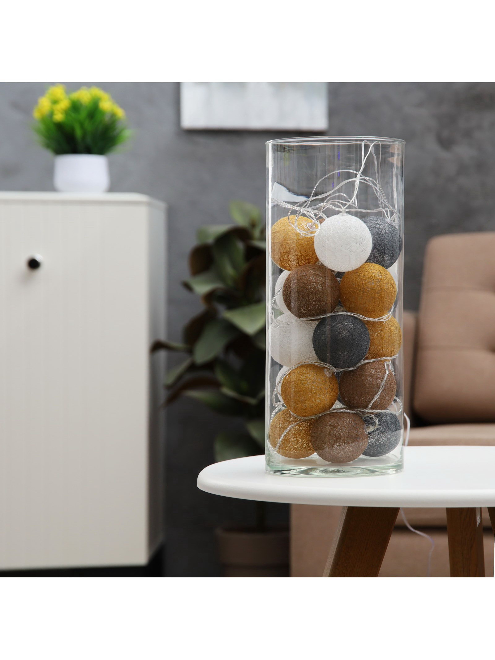 Гирлянда "Нить" 5 м с насадками "Клубки кремовые", IP20, прозрачная нить, 20 LED, свечение тёплое белое, 220 В, 6 см., Luazon Lighting, Китай