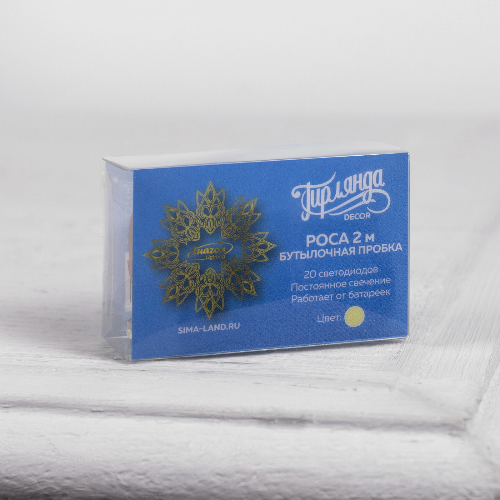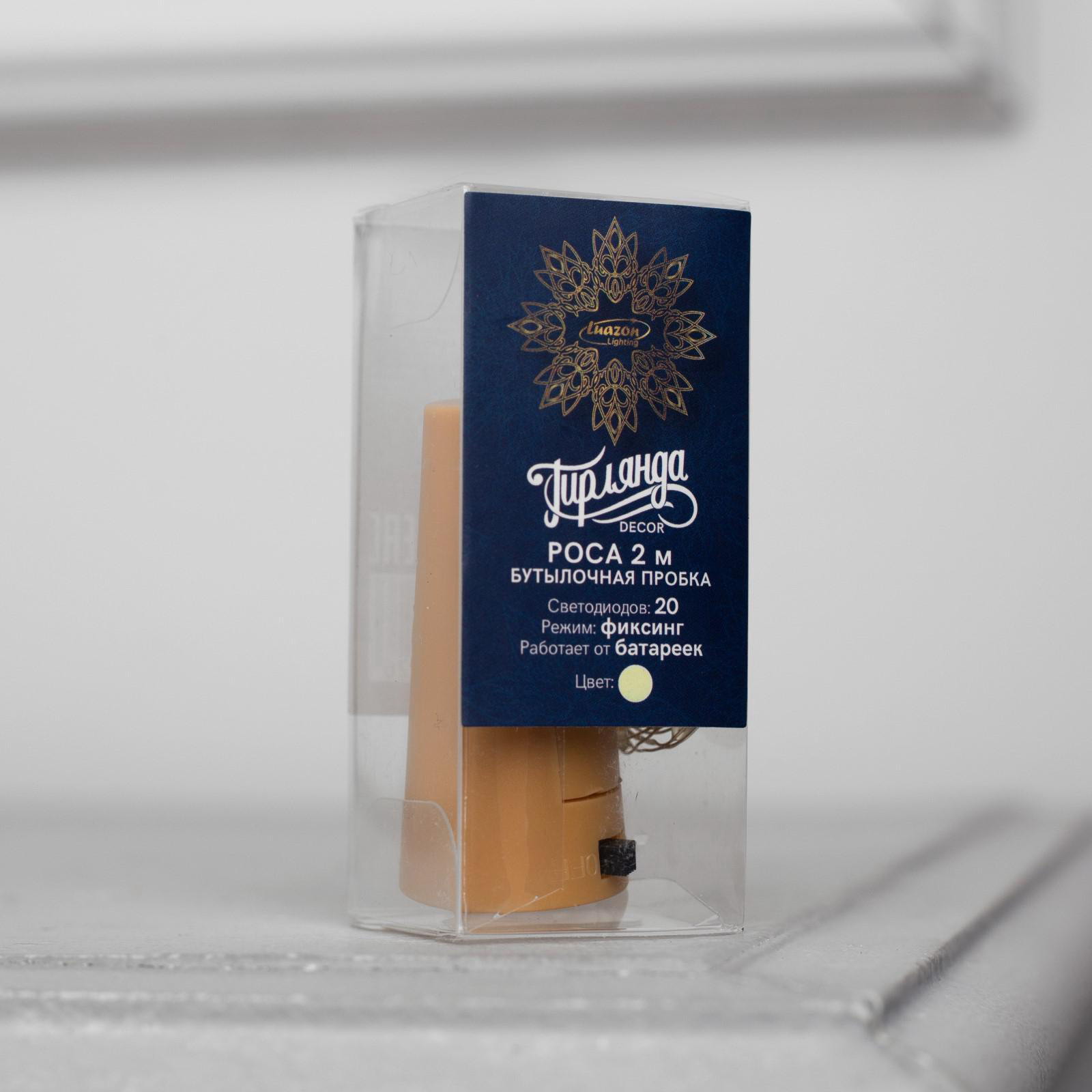 Гирлянда "Нить" 2 м роса с пробкой, IP20, серебристая нить, 20 LED, батарейки LR44x3, 6x4x2.5 см., Luazon Lighting, Китай