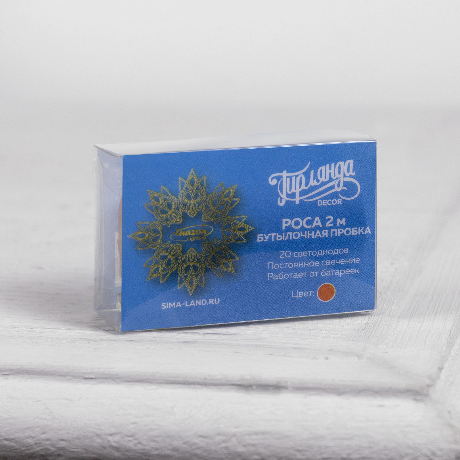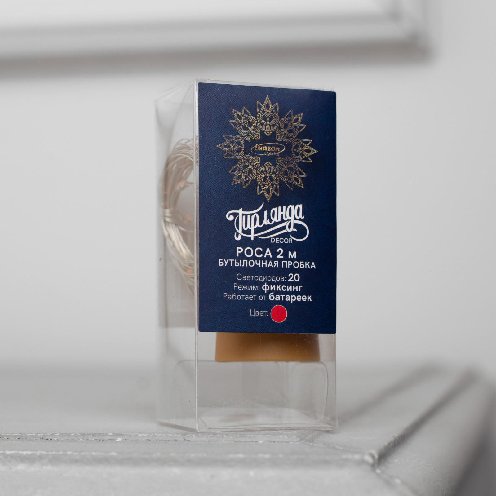Гирлянда "Нить" 2 м роса с пробкой, IP20, серебристая нить, 20 LED, свечение красное, LR44х3, 6x4x2.5 см., Luazon Lighting, Китай