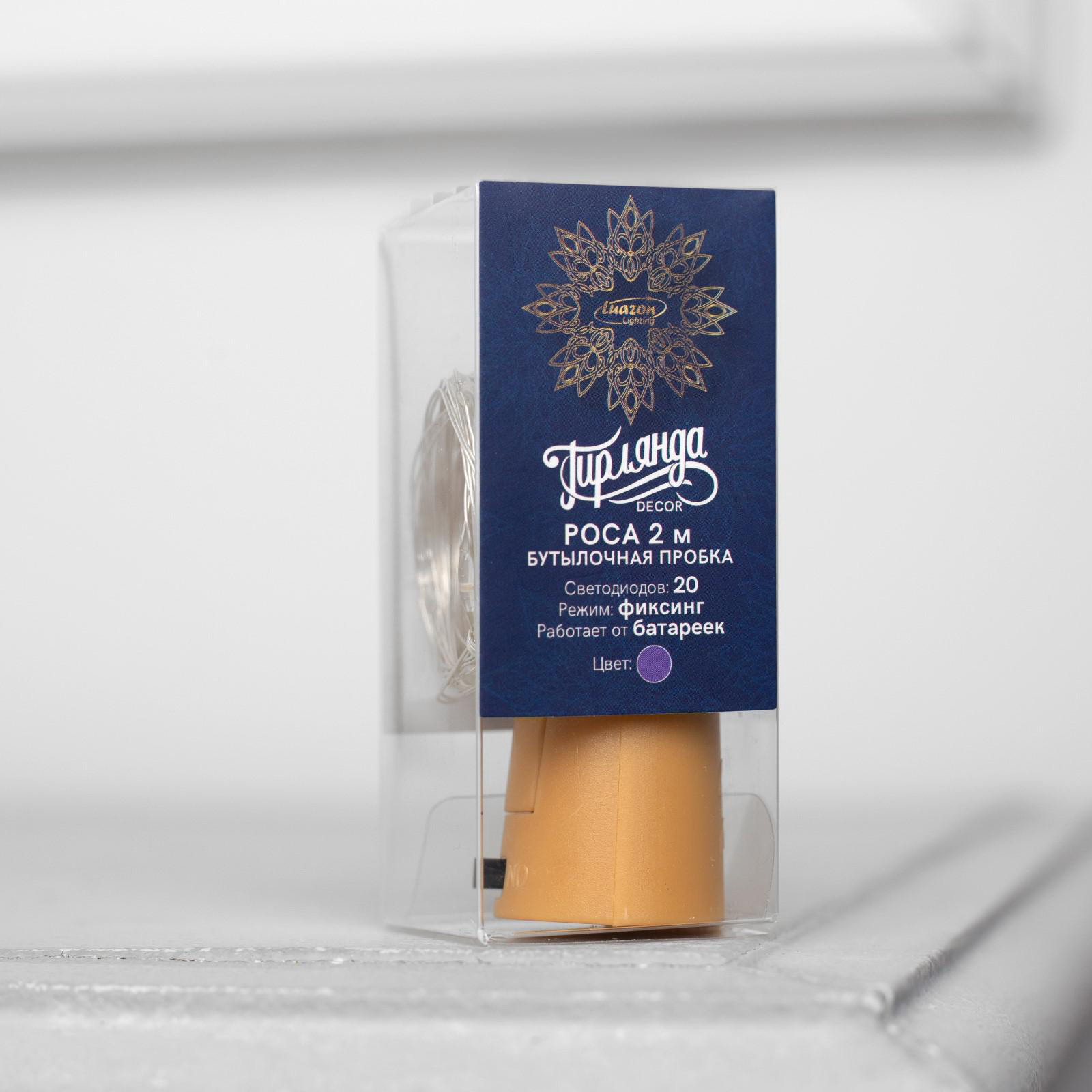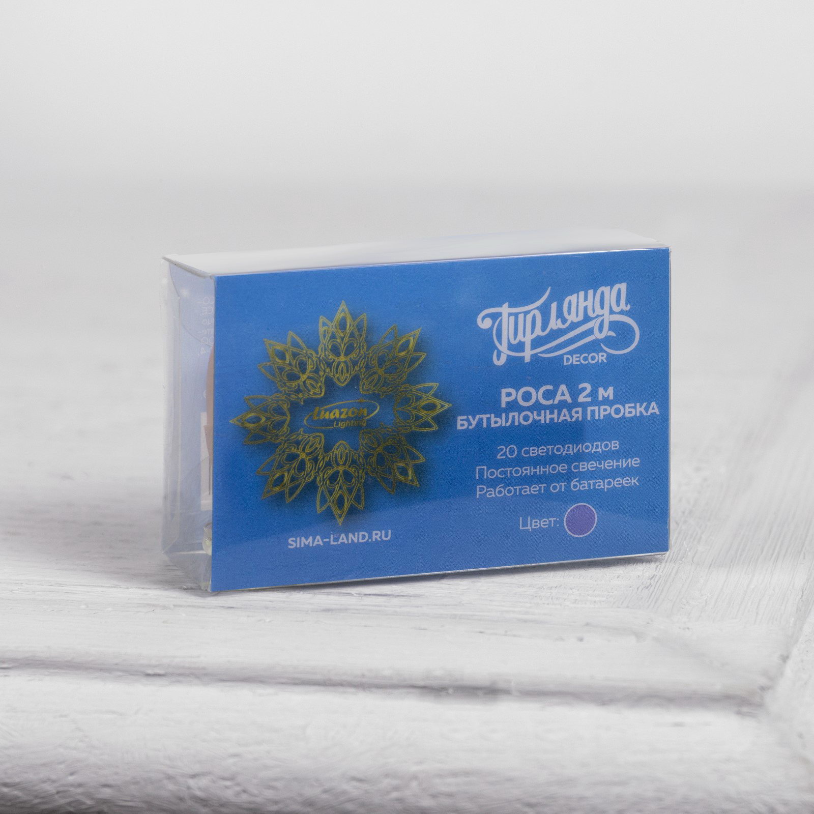 Гирлянда "Нить" 2 м роса с пробкой, IP20, серебристая нить, 20 LED, батарейки LR44x3, 6x4x2.5 см., Luazon Lighting, Китай