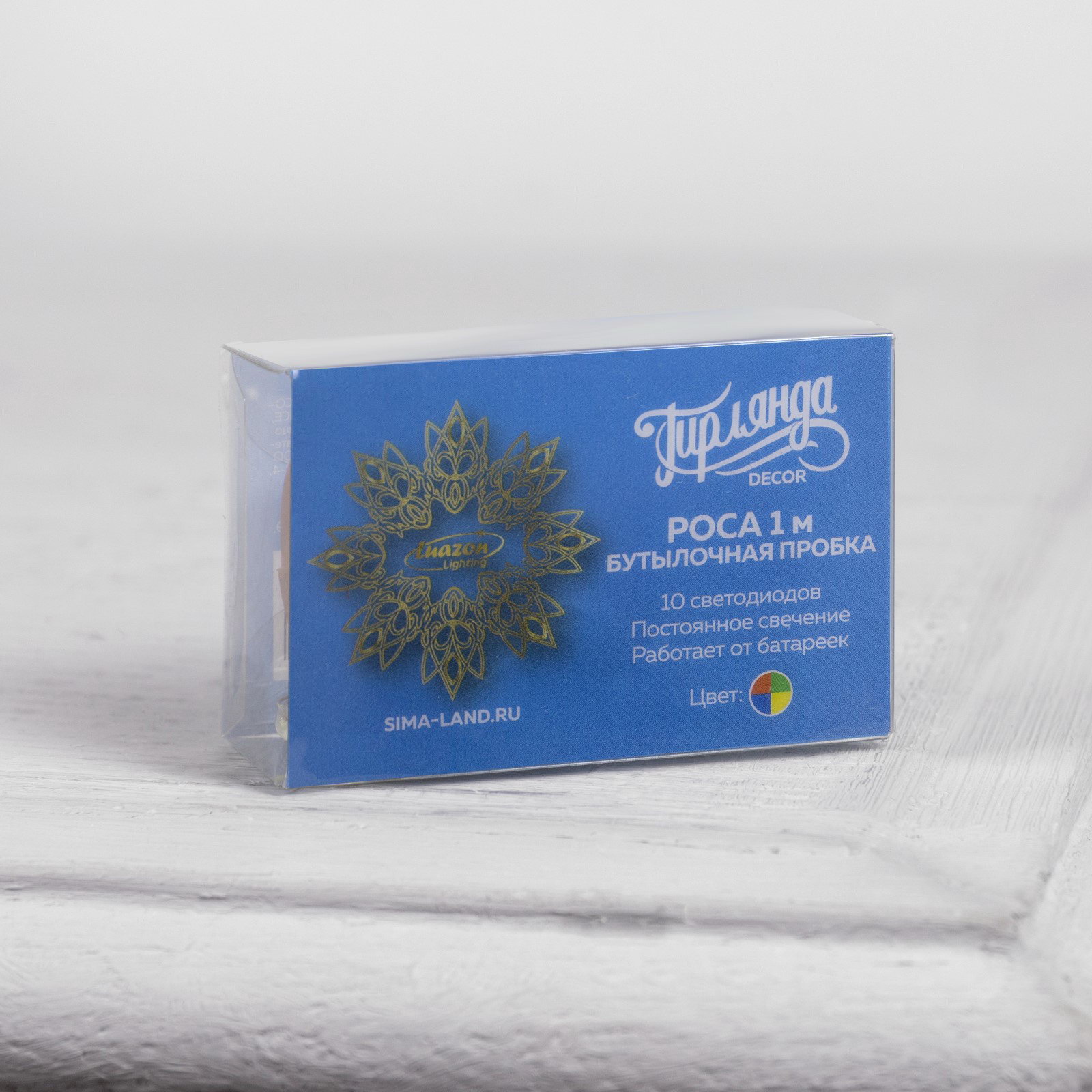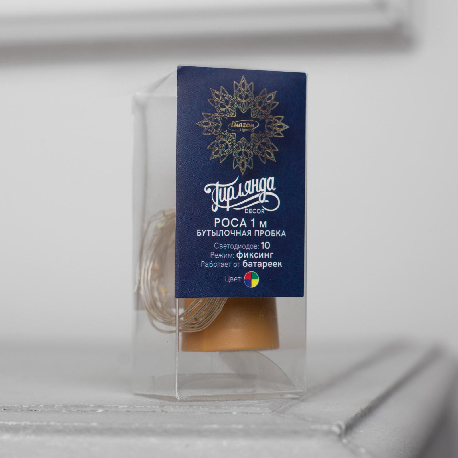 Гирлянда "Нить" 1 м роса с пробкой, IP20, серебристая нить, 10 LED, батарейки LR44х3, 6x4x2.5 см., Luazon Lighting, Китай