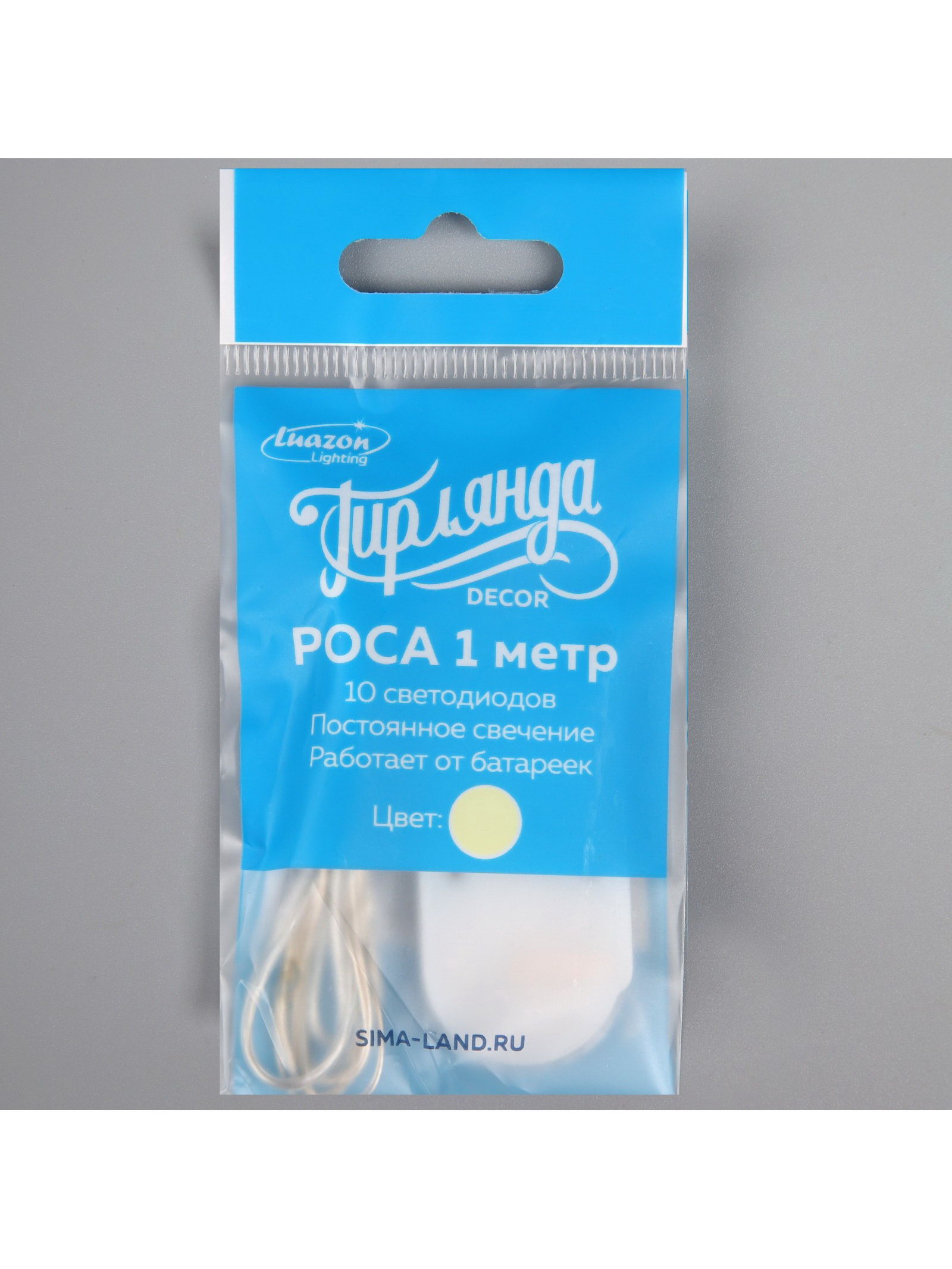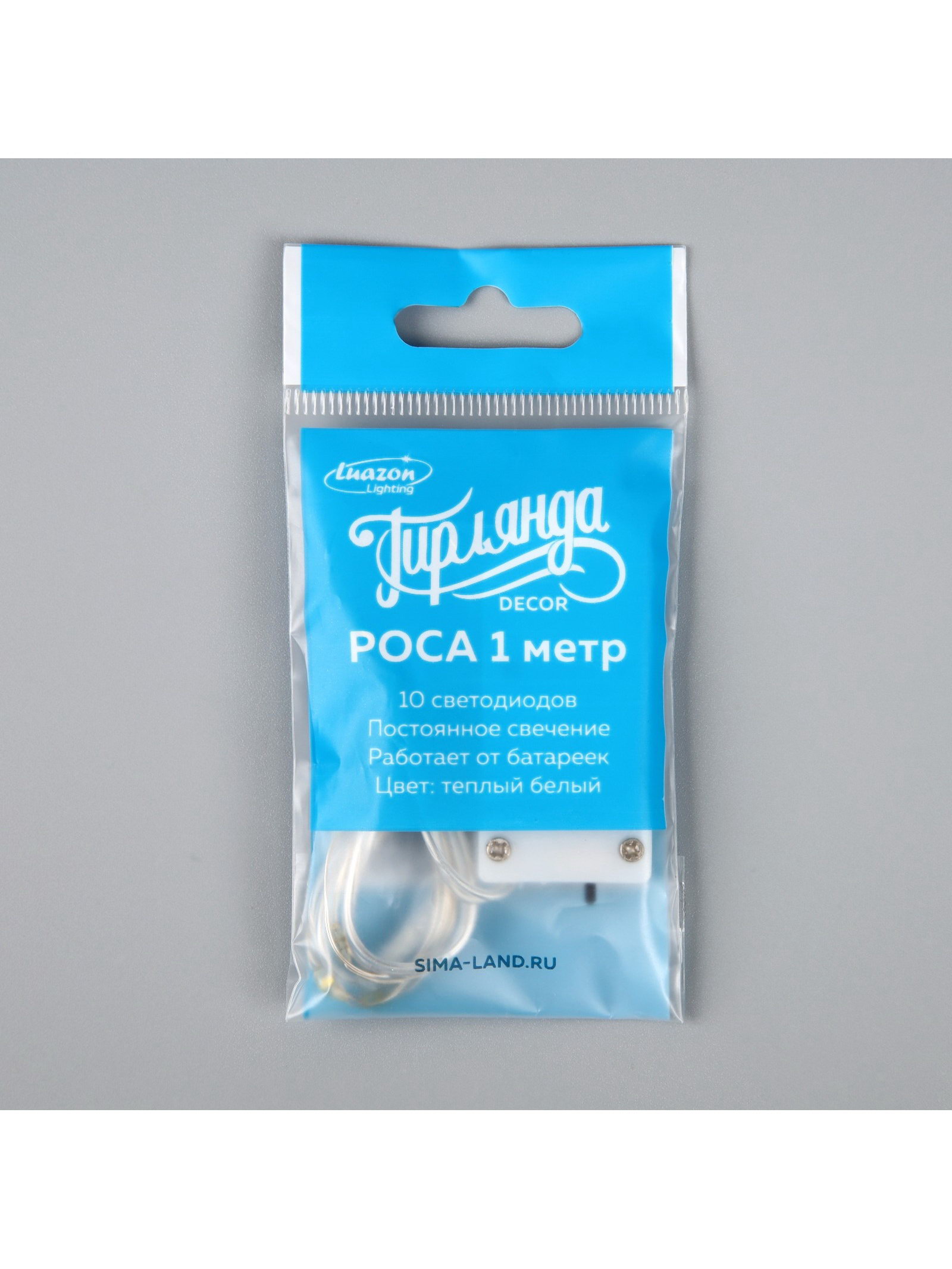 Гирлянда "Нить" 1 м роса, IP20, серебристая нить, 10 LED, батарейки CR2032х2, Luazon Lighting, Китай