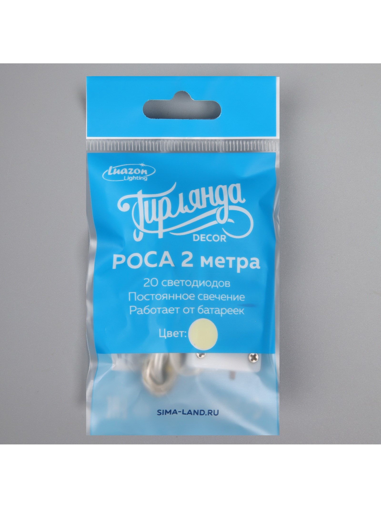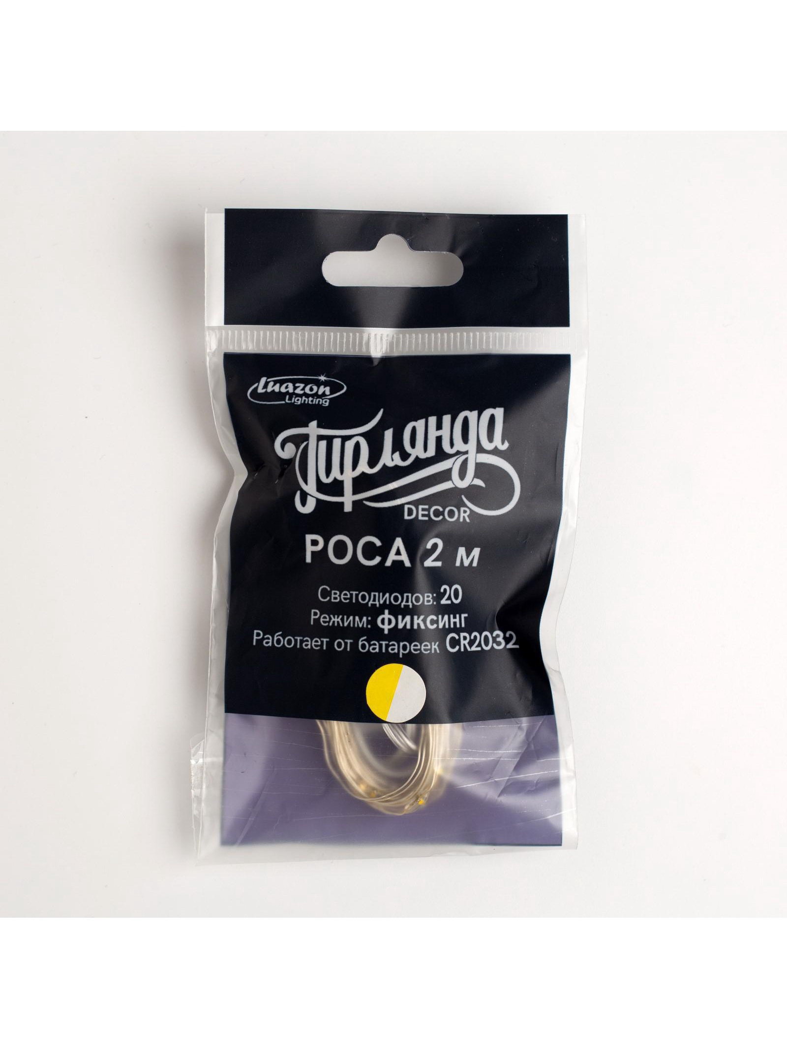 Гирлянда "Нить" 2 м роса, IP20, серебристая нить, 20 LED, батарейки CR2032x2, Luazon Lighting, Китай