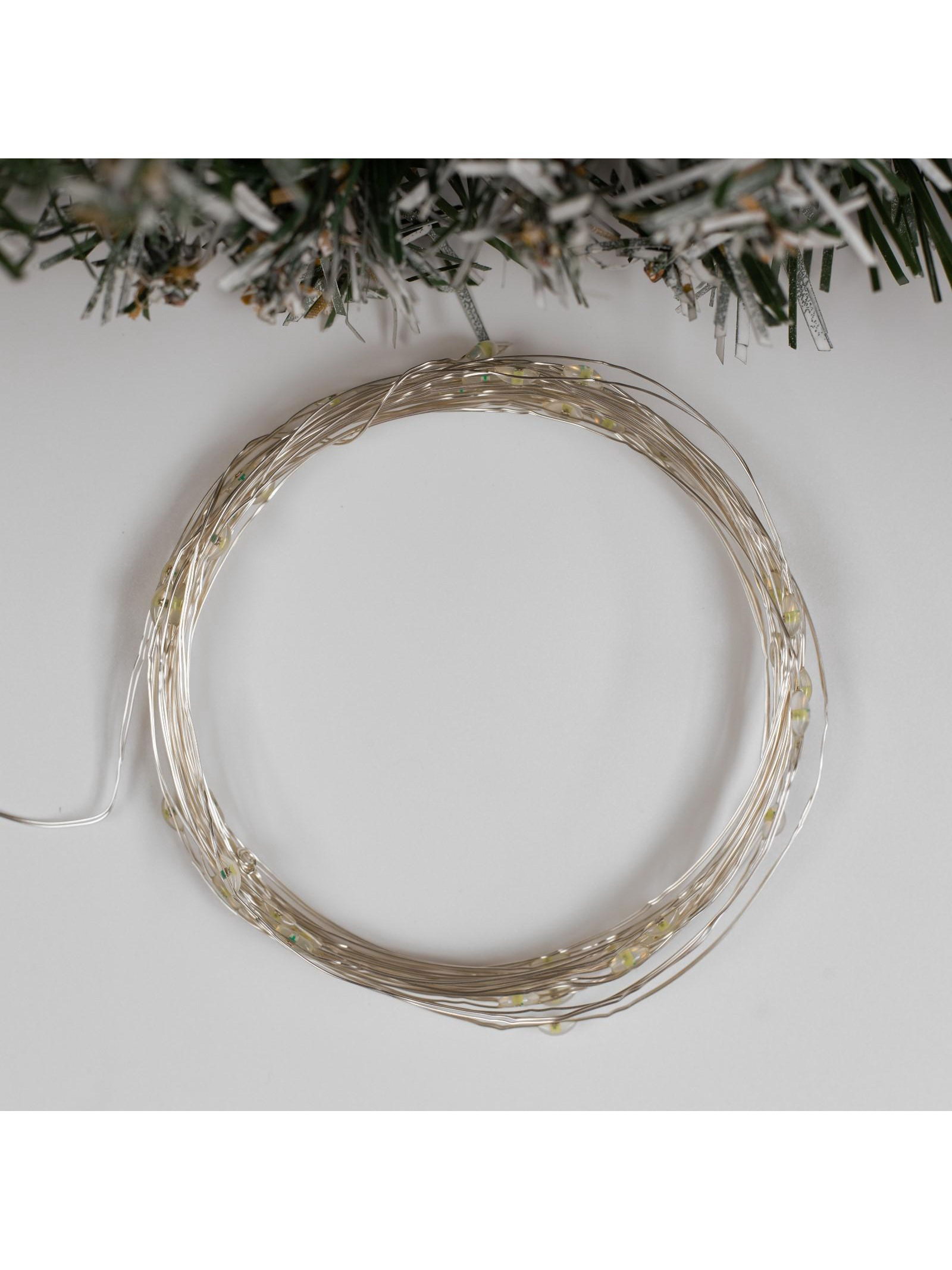 Гирлянда "Нить" 5 м, роса, IP20, серебристая нить, 50 LED, мерцание всех светодиодов, от батареек ААx3, свечение белое, Luazon Lighting, Китай