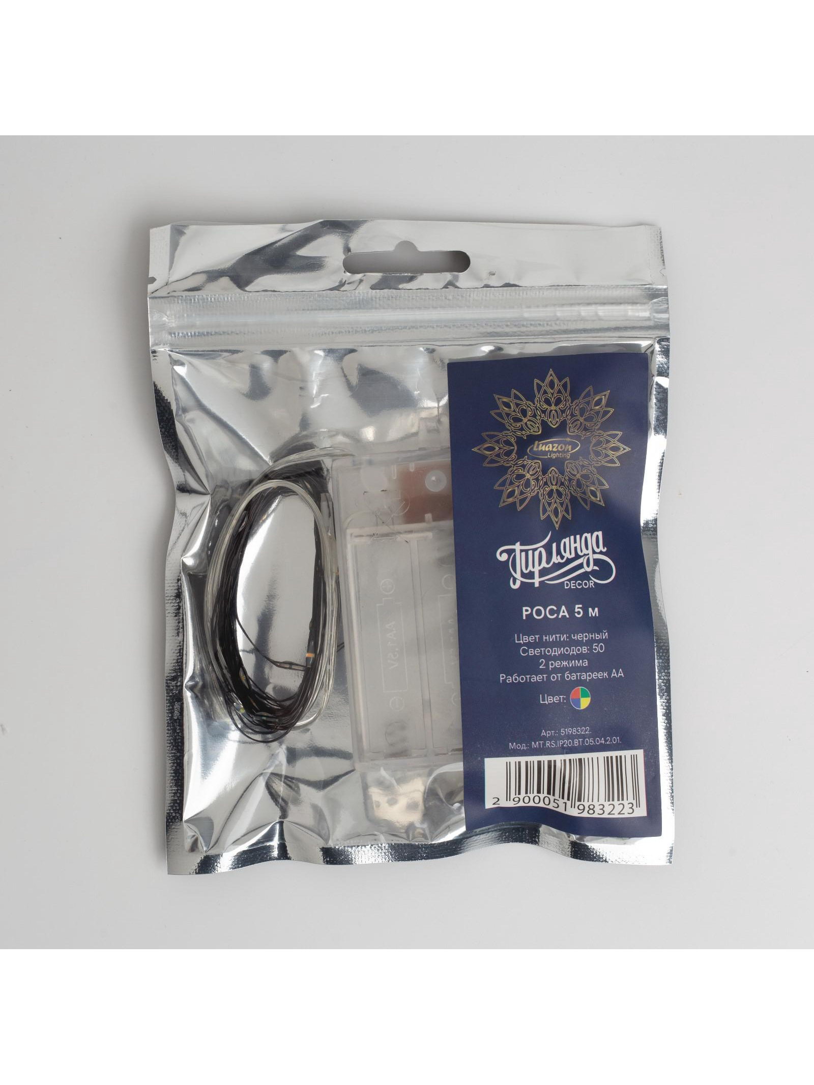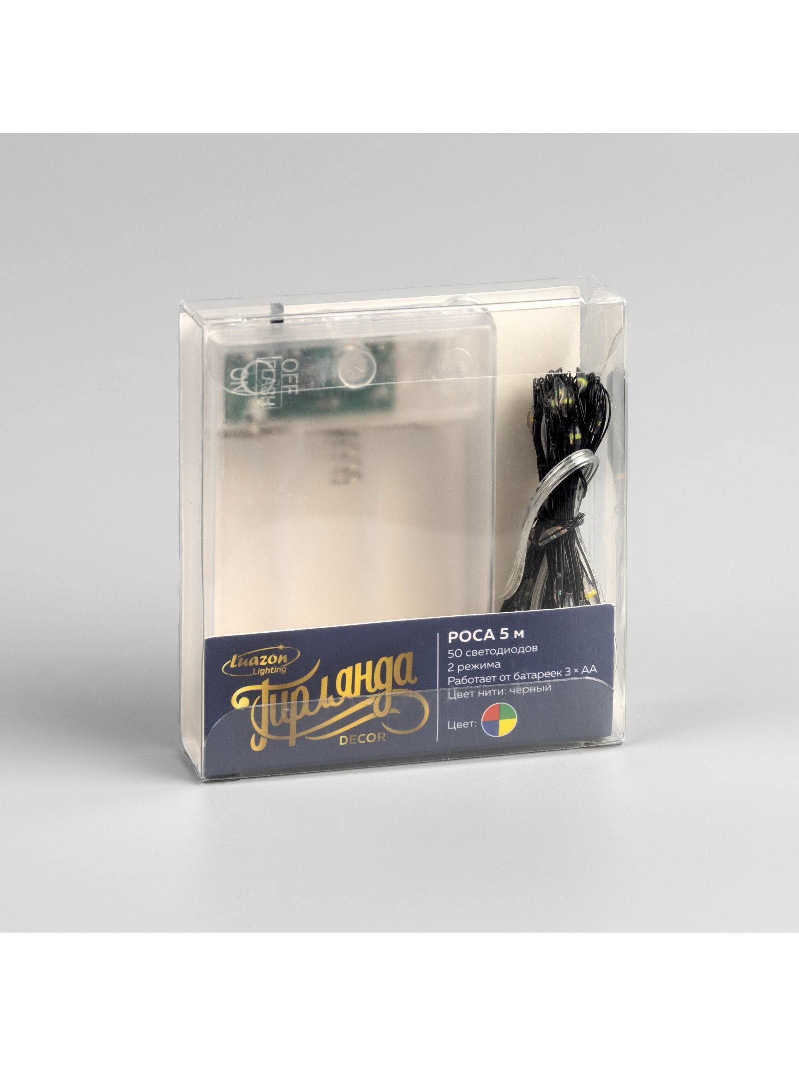 Гирлянда "Нить" 5 м, роса, IP20, чёрная нить, 50 LED, 2 режима, от батареек AAх3, свечение мульти, Luazon Lighting, Китай