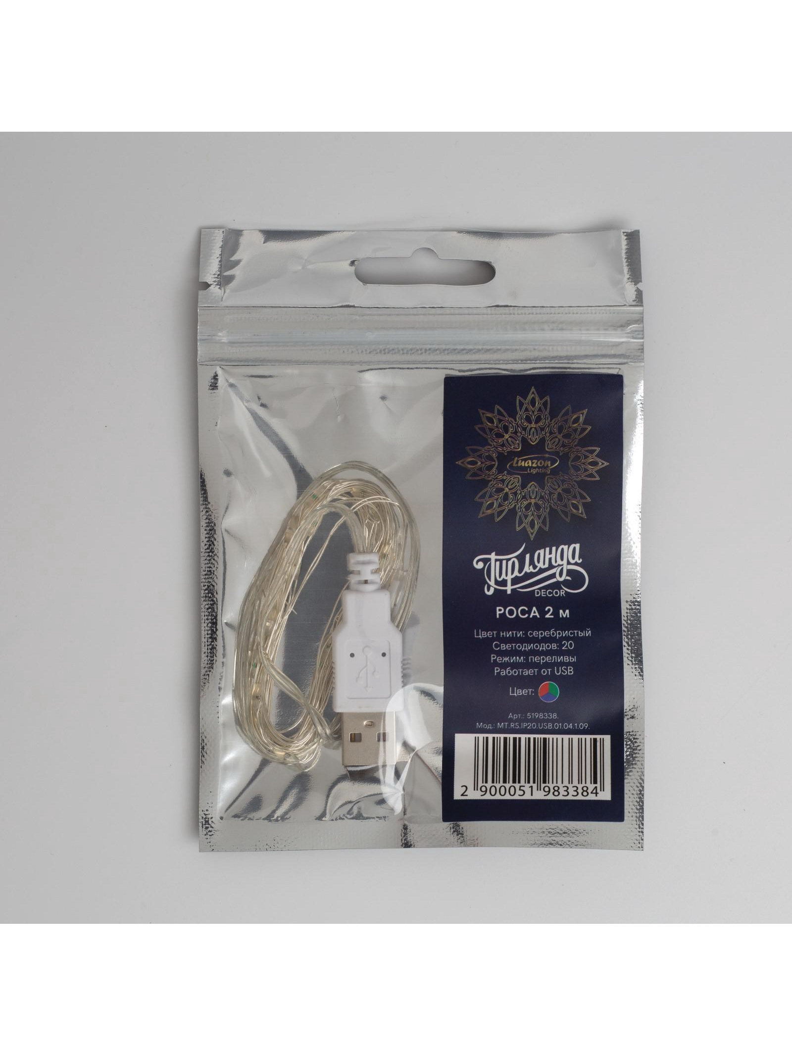 Гирлянда "Нить" 2 м роса, IP20, серебристая нить, 20 LED, свечение мульти, Luazon Lighting, Китай