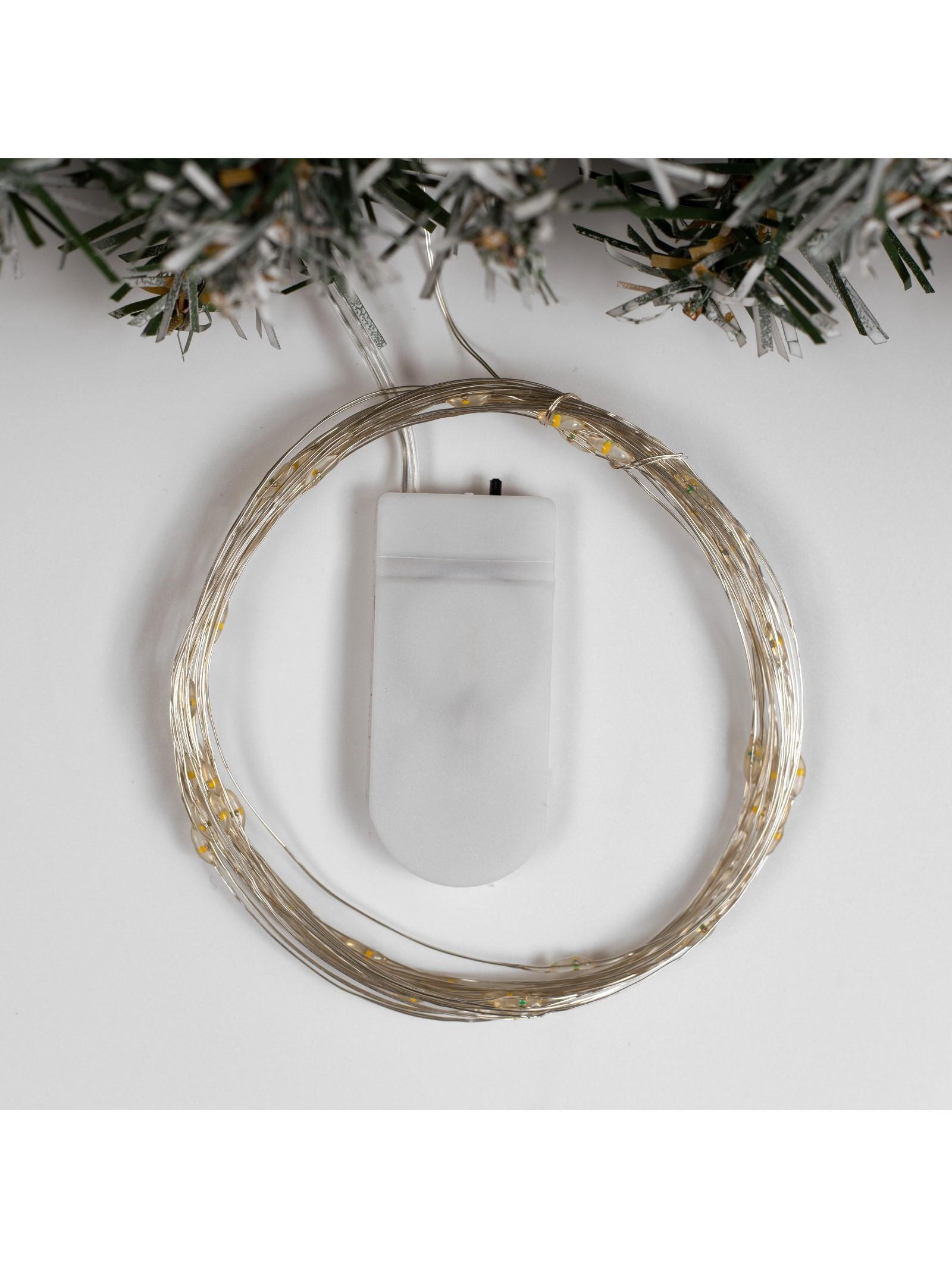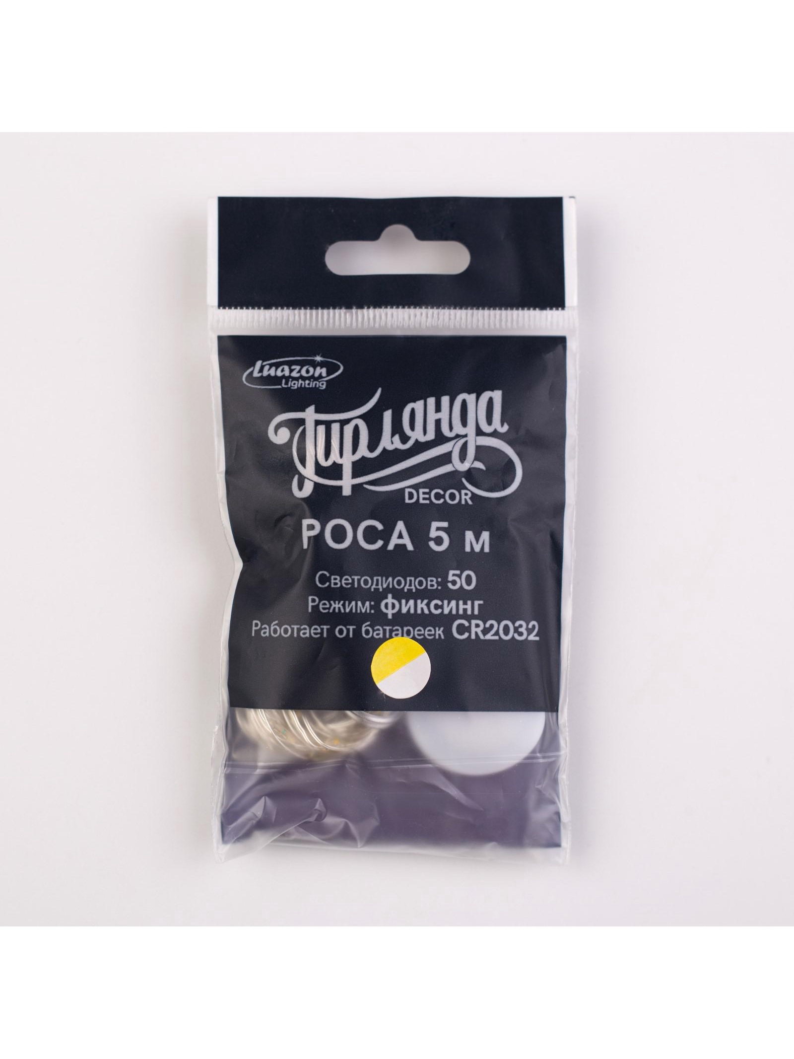 Гирлянда "Нить" 5 м роса, IP20, серебристая нить, 50 LED, батарейки CR2032x2, Luazon Lighting, Китай