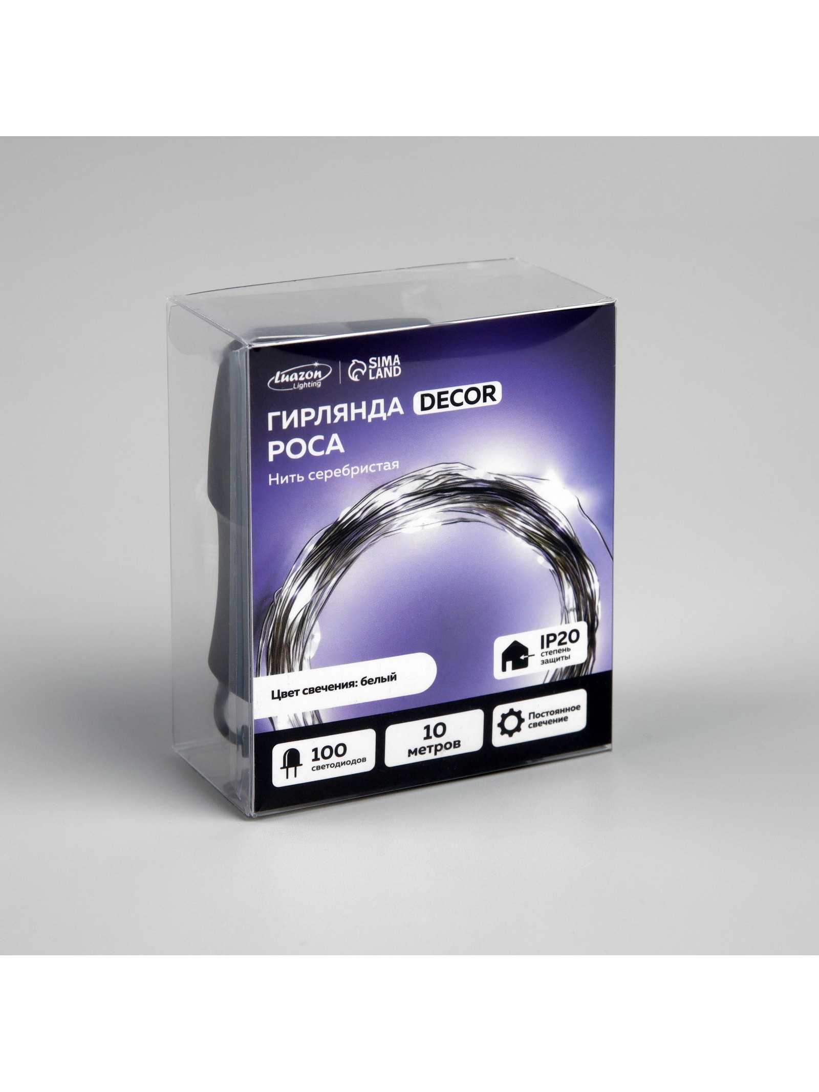 Гирлянда "Нить" 10 м, роса, IP20, серебристая нить, 100 LED, свечение белое, 12 В, Luazon Lighting, Китай