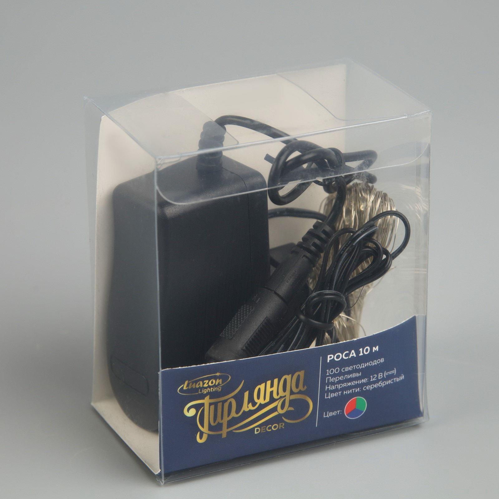 Гирлянда "Нить" 10 м, роса, IP20, серебристая нить, 100 LED, свечение мульти, Luazon Lighting, Китай