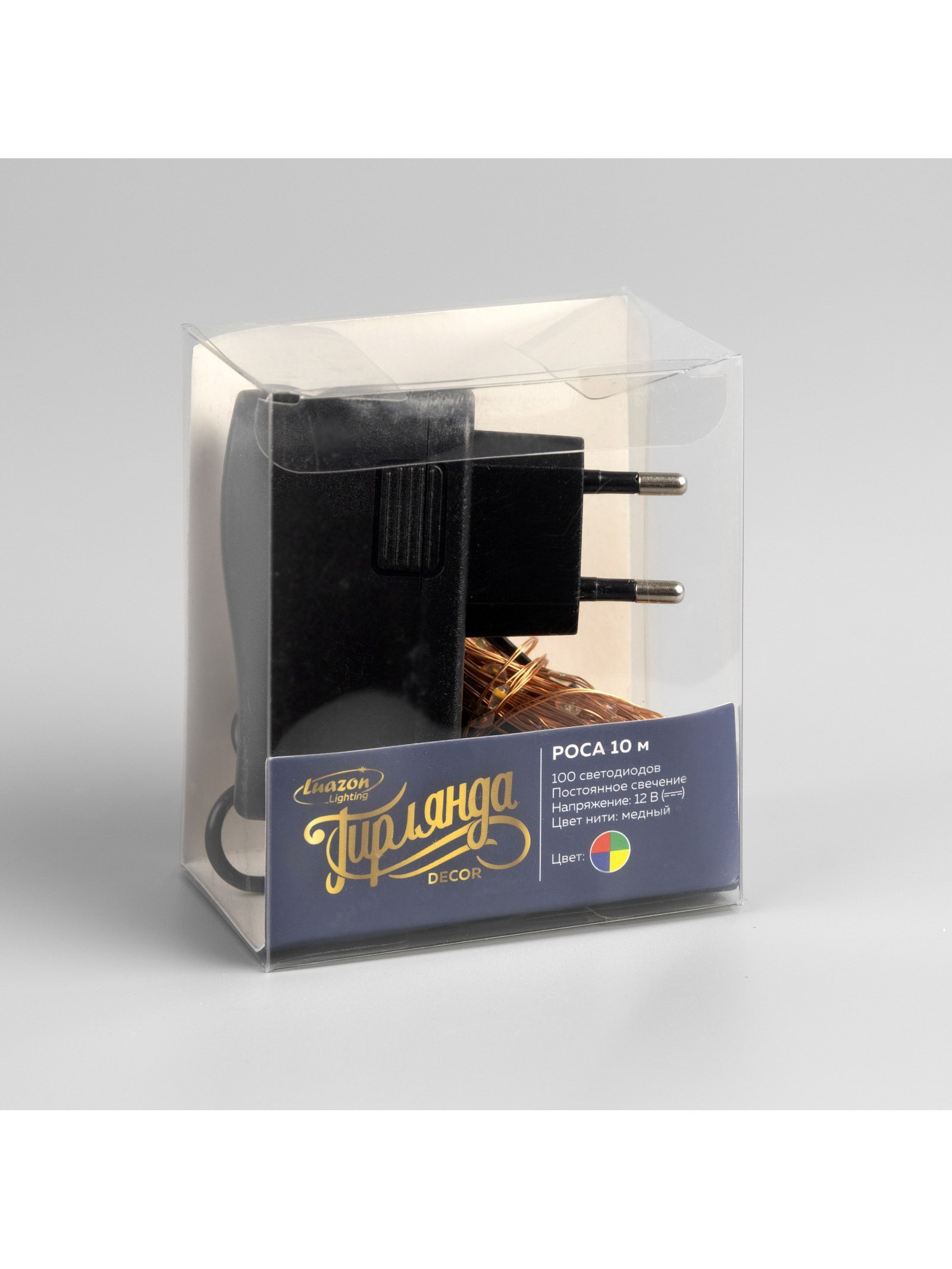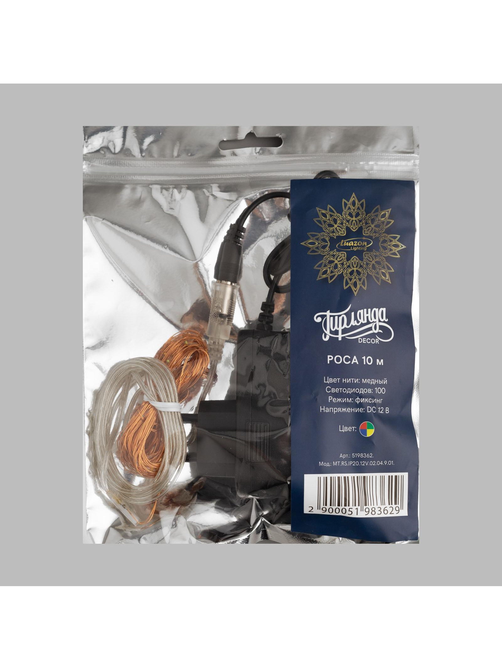 Гирлянда "Нить" 10 м, роса, IP20, медная нить, 100 LED, свечение мульти, 12 В, Luazon Lighting, Китай
