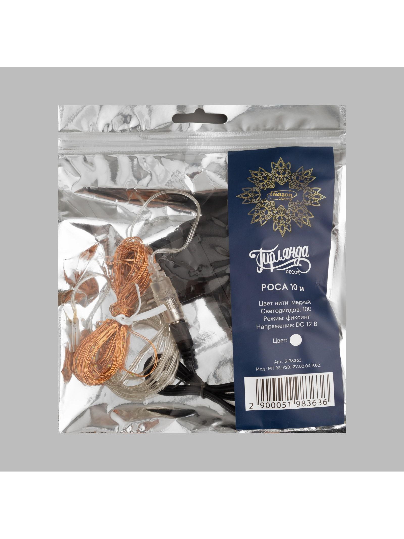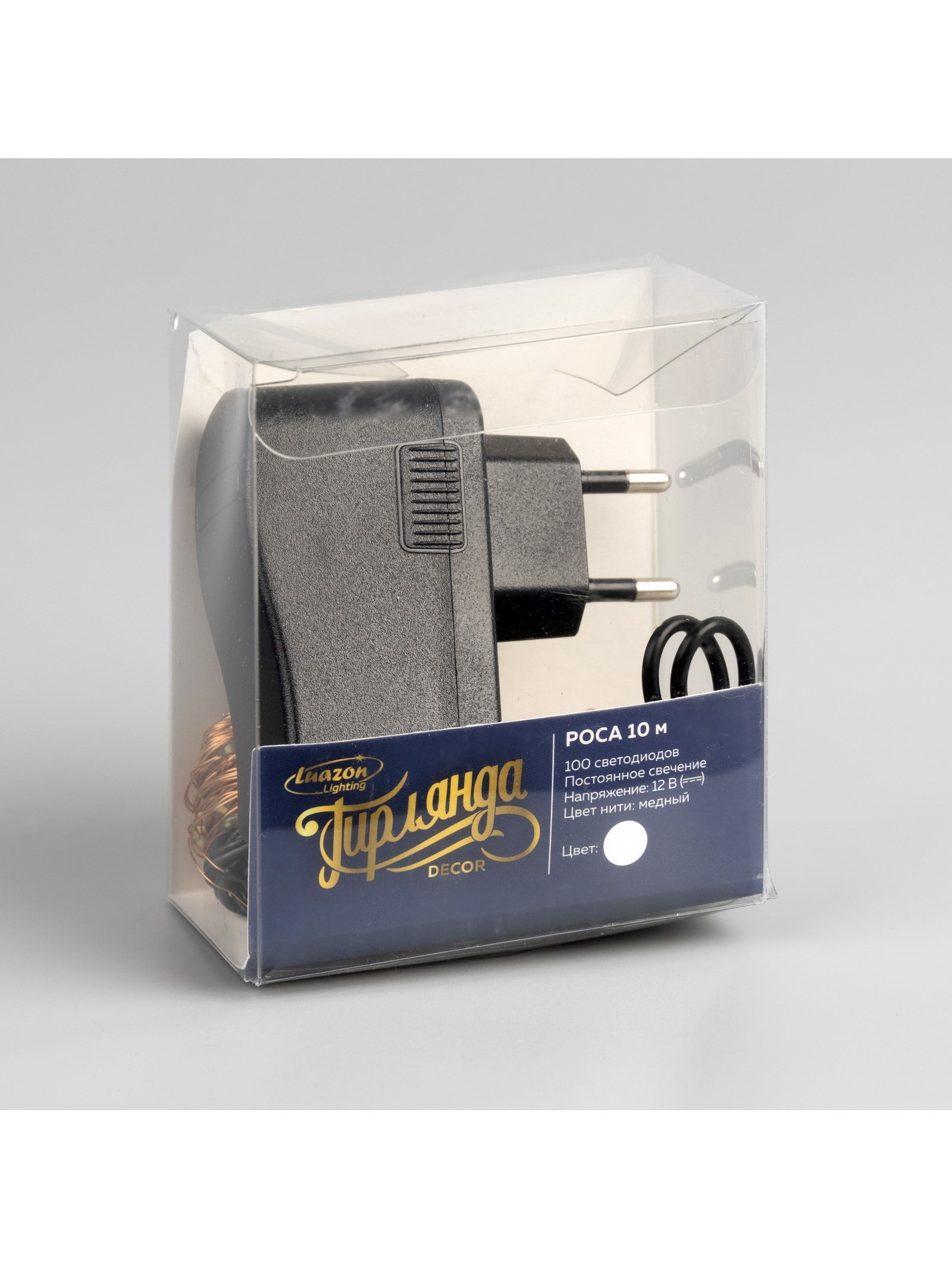 Гирлянда "Нить" 10 м, роса, IP20, медная нить, 100 LED, свечение белое, 12 В, Luazon Lighting, Китай