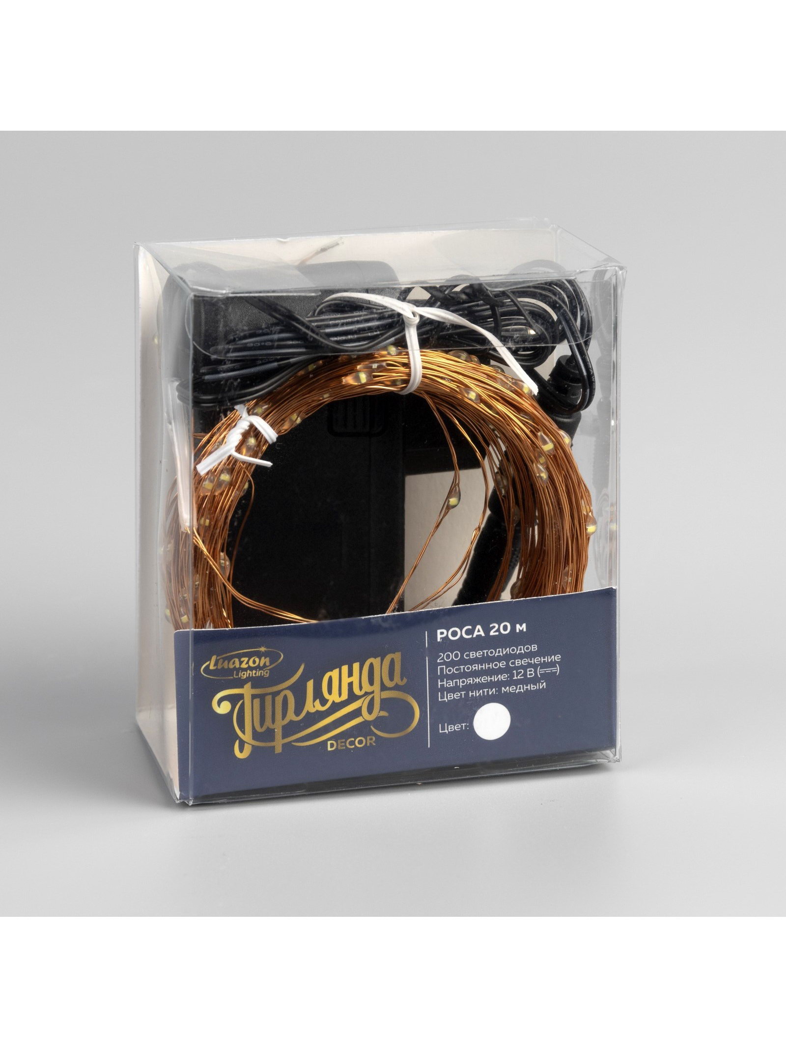 Вид гирлянды: Гирлянда-нить, Капля росы Размер упаковки: 8 x 5.5 x 9.5 см. tnved: 8539514000 Гарантийный срок, мес.: 12 Количество ламп: 200 Длина, м: 20 Количество режимов: 1 Насадки: Нет Наличие блока питания: Да Режим работы: Постоянное свечение Тематика праздника: Новый год Цвет нити гирлянды: Медный Вид лампы: Светодиодная Материал нити: Лаковое покрытие Тип подключения: Комплект для подключения Цвет свечения: Белый Применение: Внутреннее Степень защиты: IP20 Необходимая комплектация: Не нужна Температурный режим: От -10 до +35 ℃ Тип питания: 12 В