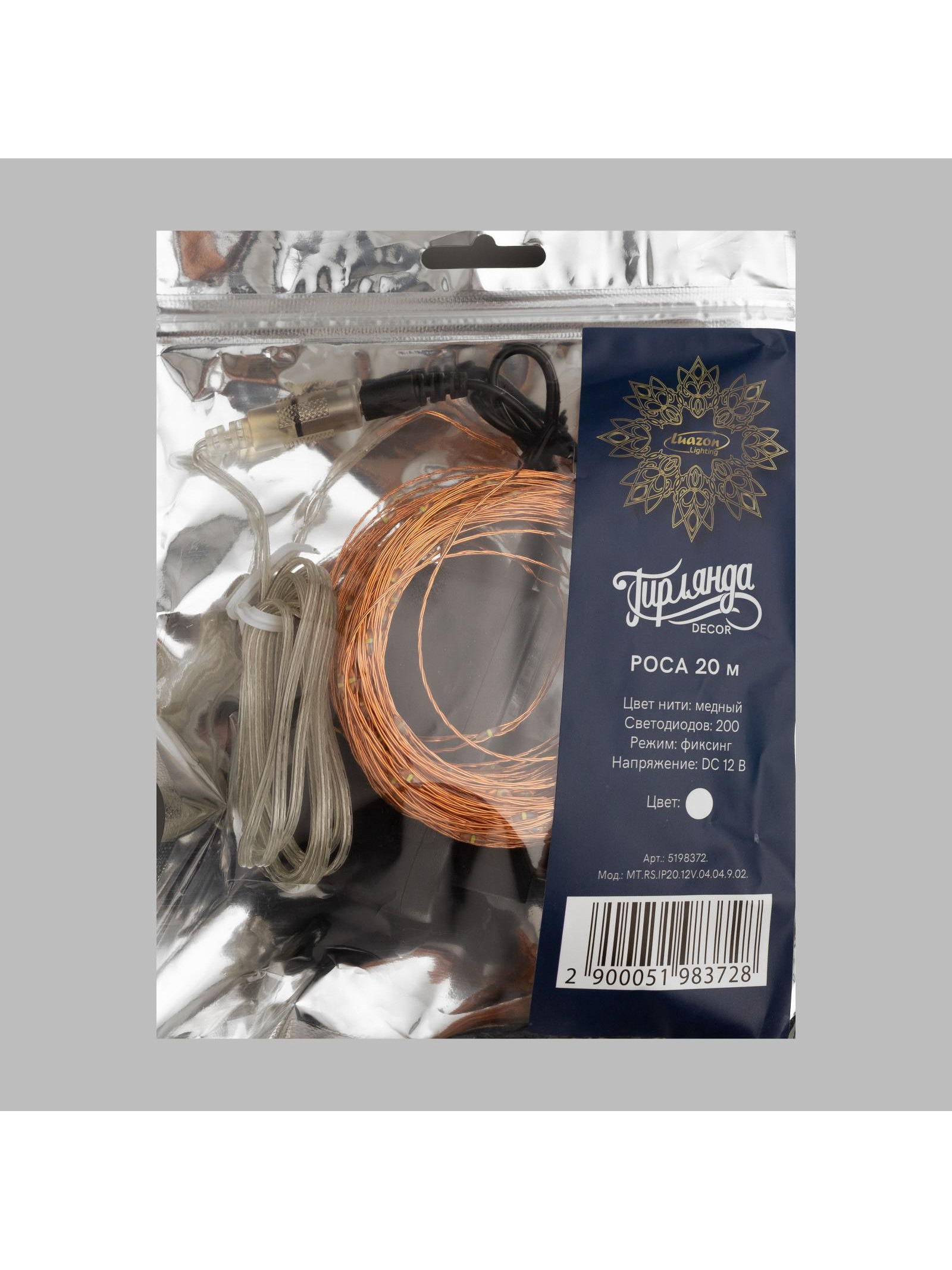 Гирлянда "Нить" 20 м, роса, IP20, медная нить, 200 LED, свечение белое, 12 В, Luazon Lighting, Китай