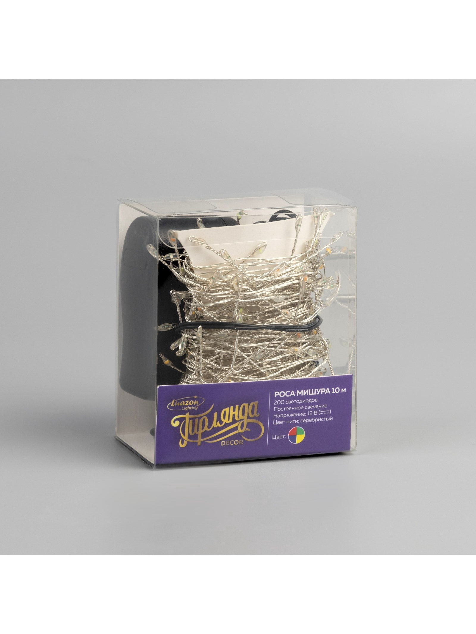 Гирлянда "Мишура" 10 м, роса, IP20, серебристая нить, 200 LED, свечение мульти, 12 В, 7x7x3 см., Luazon Lighting, Китай