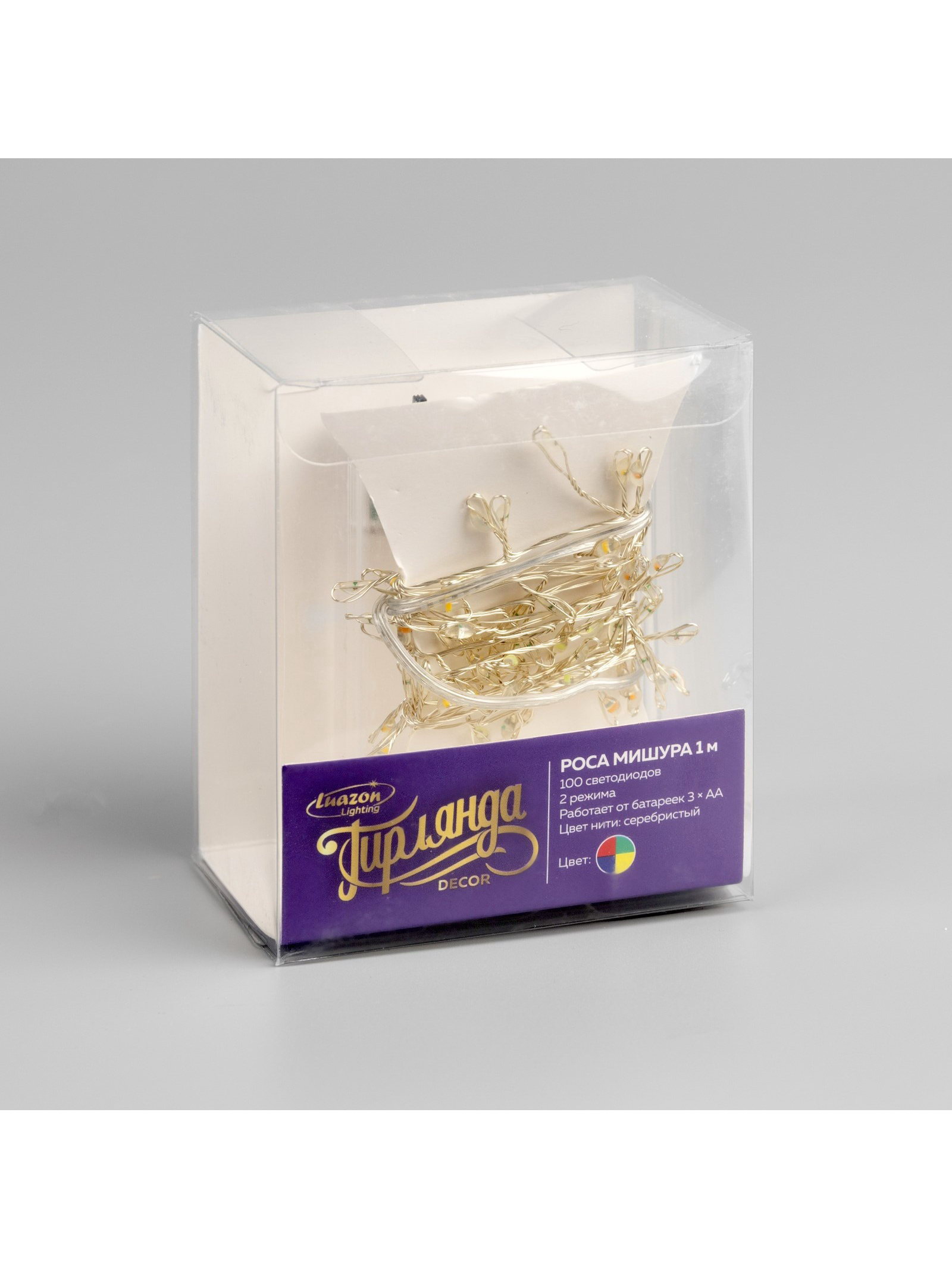 Гирлянда "Мишура" 1 м, роса, IP20, серебристая нить, 100 LED, 2 режима, от батареек ААx3, свечение мульти, Luazon Lighting, Китай