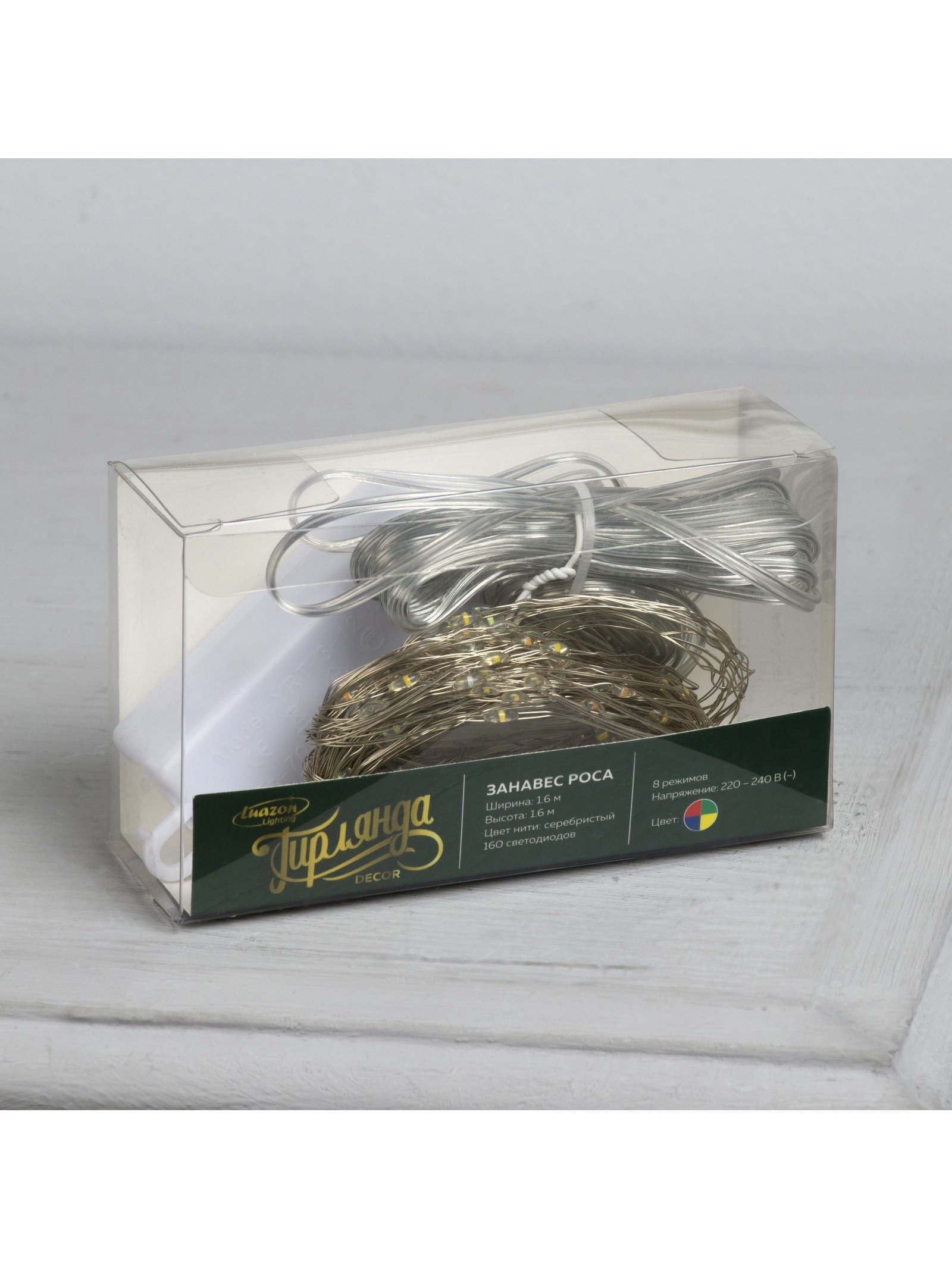 Гирлянда "Занавес" 1.6x1.6 м, роса, IP20, серебристая нить, 160 LED, свечение мульти, 8 режимов, 220 В, Luazon Lighting, Китай