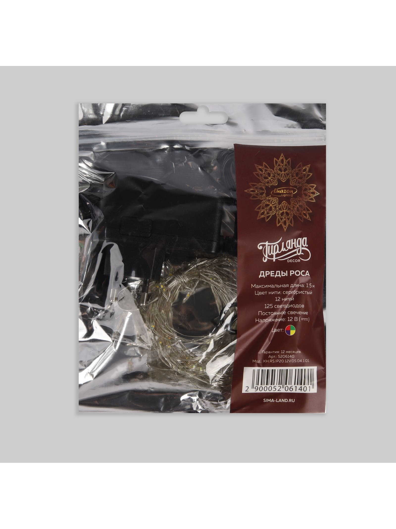 Гирлянда "Дреды" 1.5 м, IP20, серебристая нить, 125 LED, свечение мульти, 12 В, Luazon Lighting, Китай