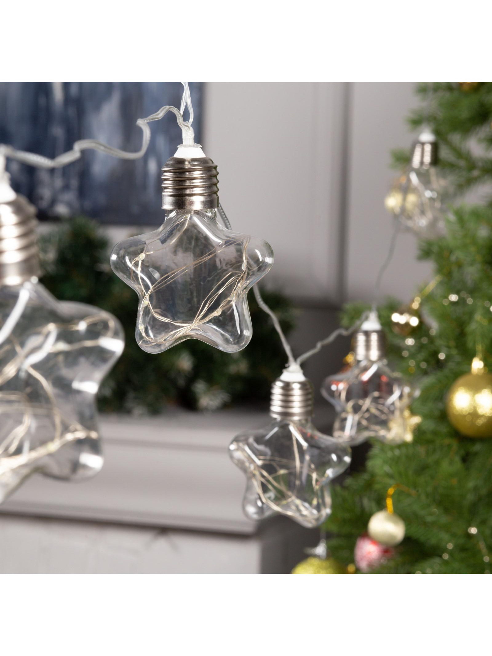 Гирлянда "Нить" 3 м с насадками "Лампочки звездочки", IP20, прозрачная нить, 80 LED, свечение белое, 8 режимов, 220 В, Luazon Lighting, Китай
