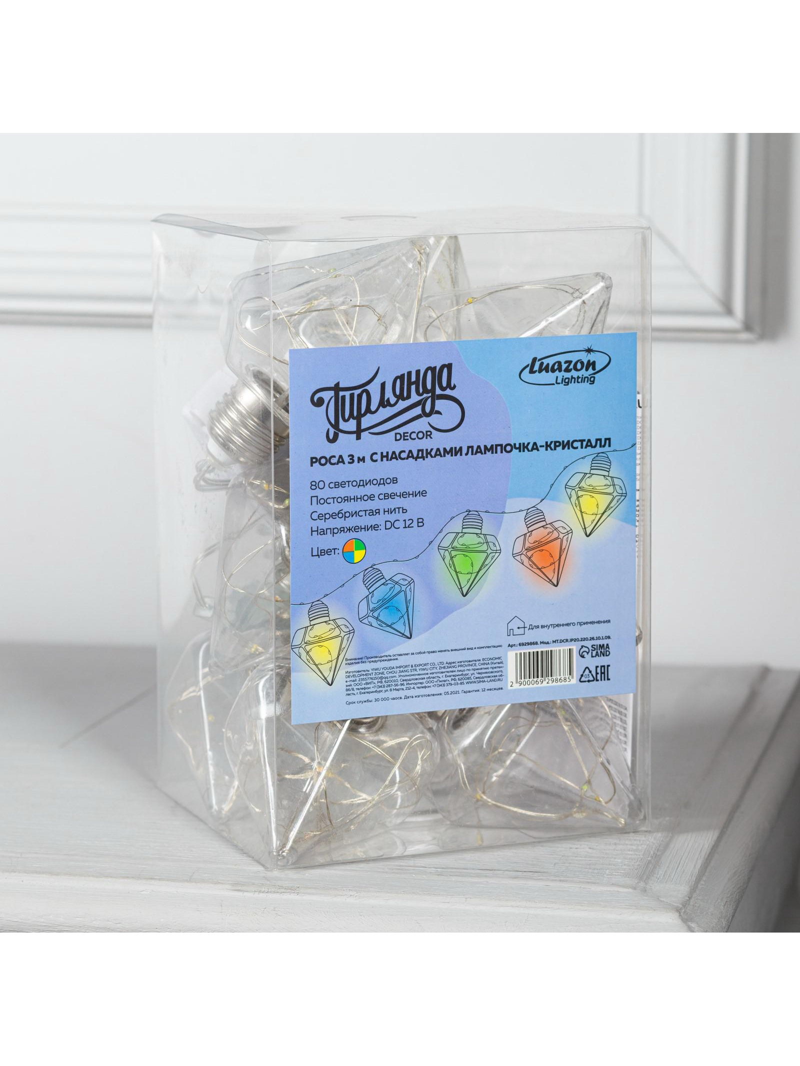 Гирлянда "Нить" 3 м с насадками "Лампочки кристалл", IP20, прозрачная нить, 80 LED, свечение мульти, 8 режимов, 220 В, Luazon Lighting, Китай