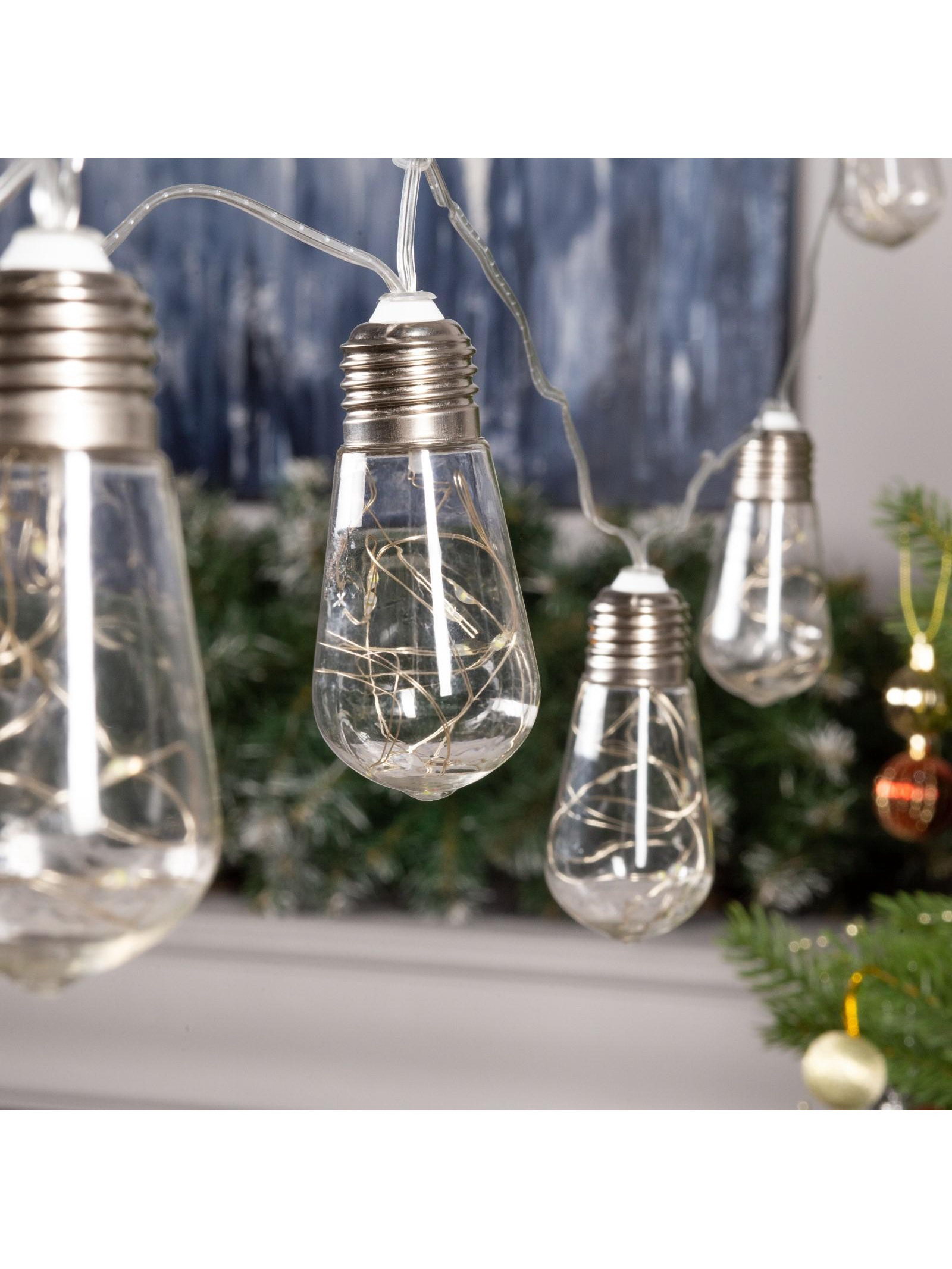 Гирлянда "Нить" 3 м с насадками "Лампа", IP20, прозрачная нить, 80 LED, свечение белое, 8 режимов, 220 В, Luazon Lighting, Китай