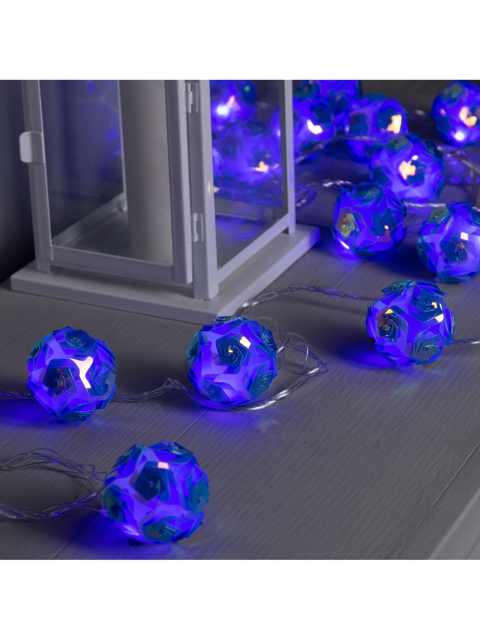 Гирлянда "Нить" 4.5 м с насадками "Цветочные шары", IP20, прозрачная нить, 15 LED, свечение фиолетовое, 220 В, 5x20x20 см., Luazon Lighting, Китай
