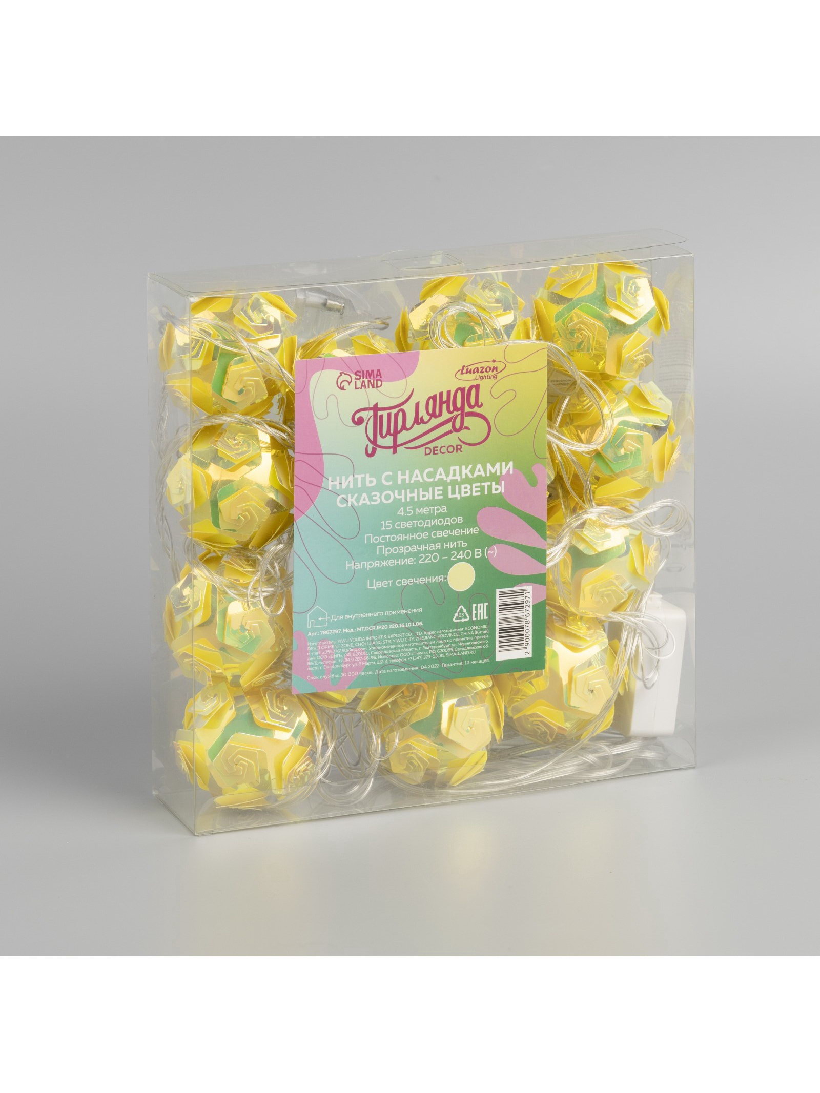 Гирлянда "Нить" 4.5 м с насадками "Цветочные шары", IP20, прозрачная нить, 15 LED, свечение тёплое белое, 220 В, 5x20x20 см., Luazon Lighting, Китай